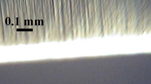 Снимок при увеличении 150Х. При наклоне лезвия примерно в 30град. Бритва WOSTENHOLM&SON. Финальная заточка на арканзасе транслюсент + ремни. (Фото увеличиваются)