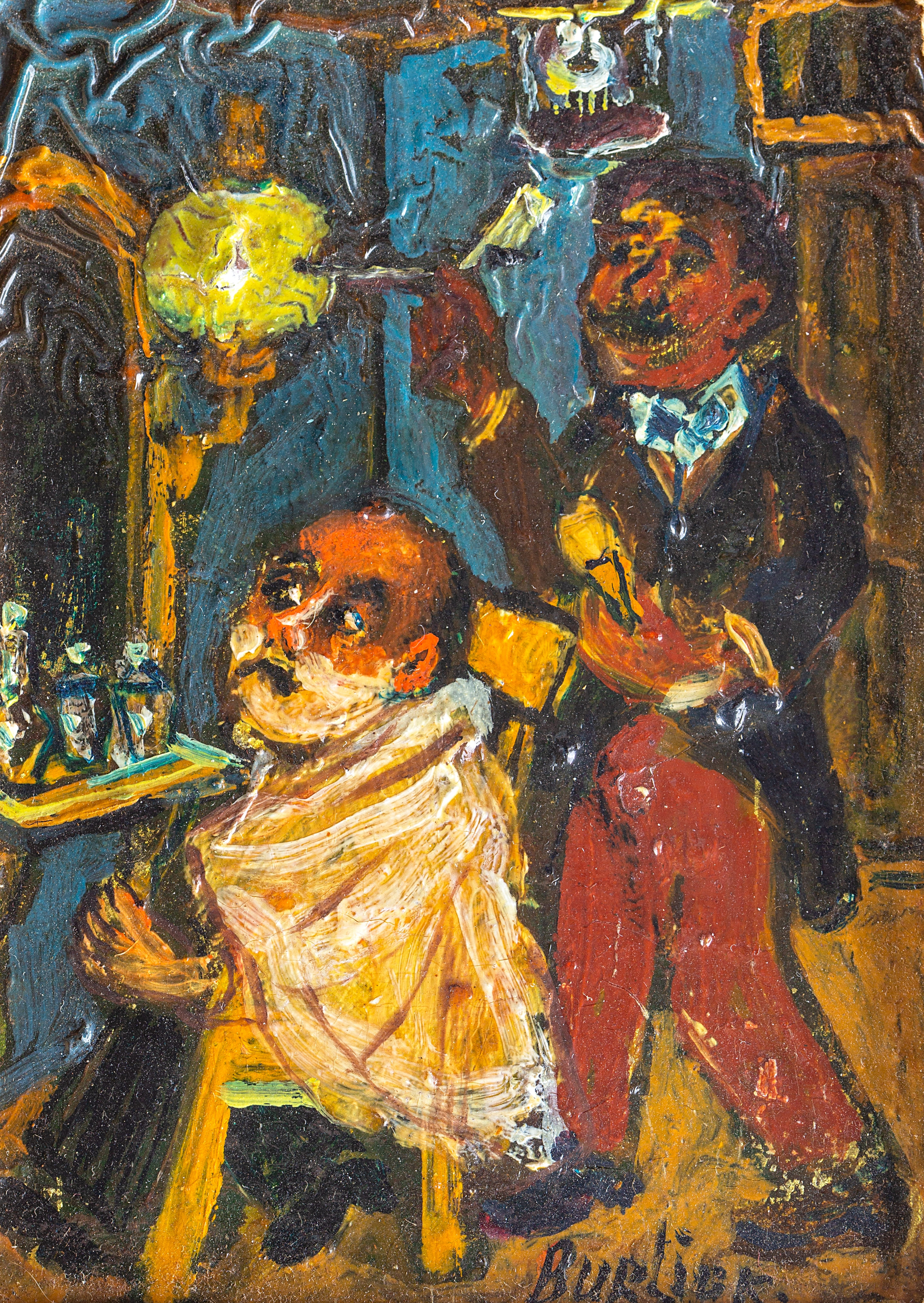 Опасная бритва в искусстве (картины, рисунки, фото, тату)Ещё картины Давида Бурлюка со сценами в парикмахерской.