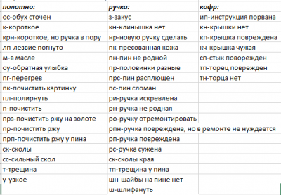 Краткое пояснение: вначале инфо по бритве, что на ней есть, затем оценки состояния всех частей, затем сокращения их состояния: