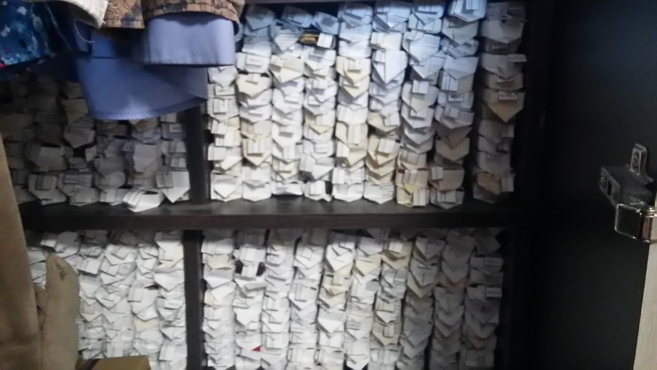По причине перенаселенности квартиры, храню бритвы в бельевом шкафу, на который ввожу потихоньку ограничения на импорт, чтобы они меня из него не выселили окончательно. Расчет вначале был на то, что в нем в основном рубашки висят, которые до пола не достают, поэтому нижний этаж решил под склад сделать, ну и, понятно, одежда влагу лишнюю адсорбирует. Чтобы кофры доплонительно защитить от вышаркивания, оборачиваю их бумагой, сворачивая "язычек" сторца, за который потом можно вытаскивать.