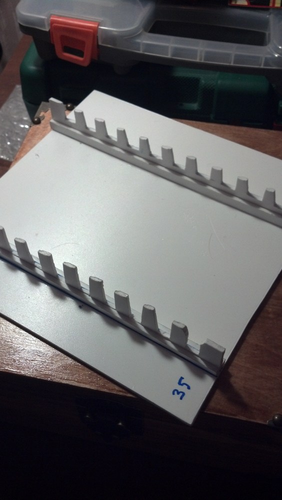 Для "гребенки" использовал вспененый пластик 2мм толщиной. Обрезки у рекламщиков забрал. Пластик этот в меру жесткий и в мер упругий, самое то. К тому же отлично обрабатывается и режется.