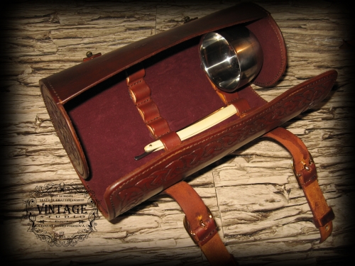 Вот когда то делал. На 7 бритв, вмещает в себя подвесной ремень, чашу походную, место остается и под помазок.