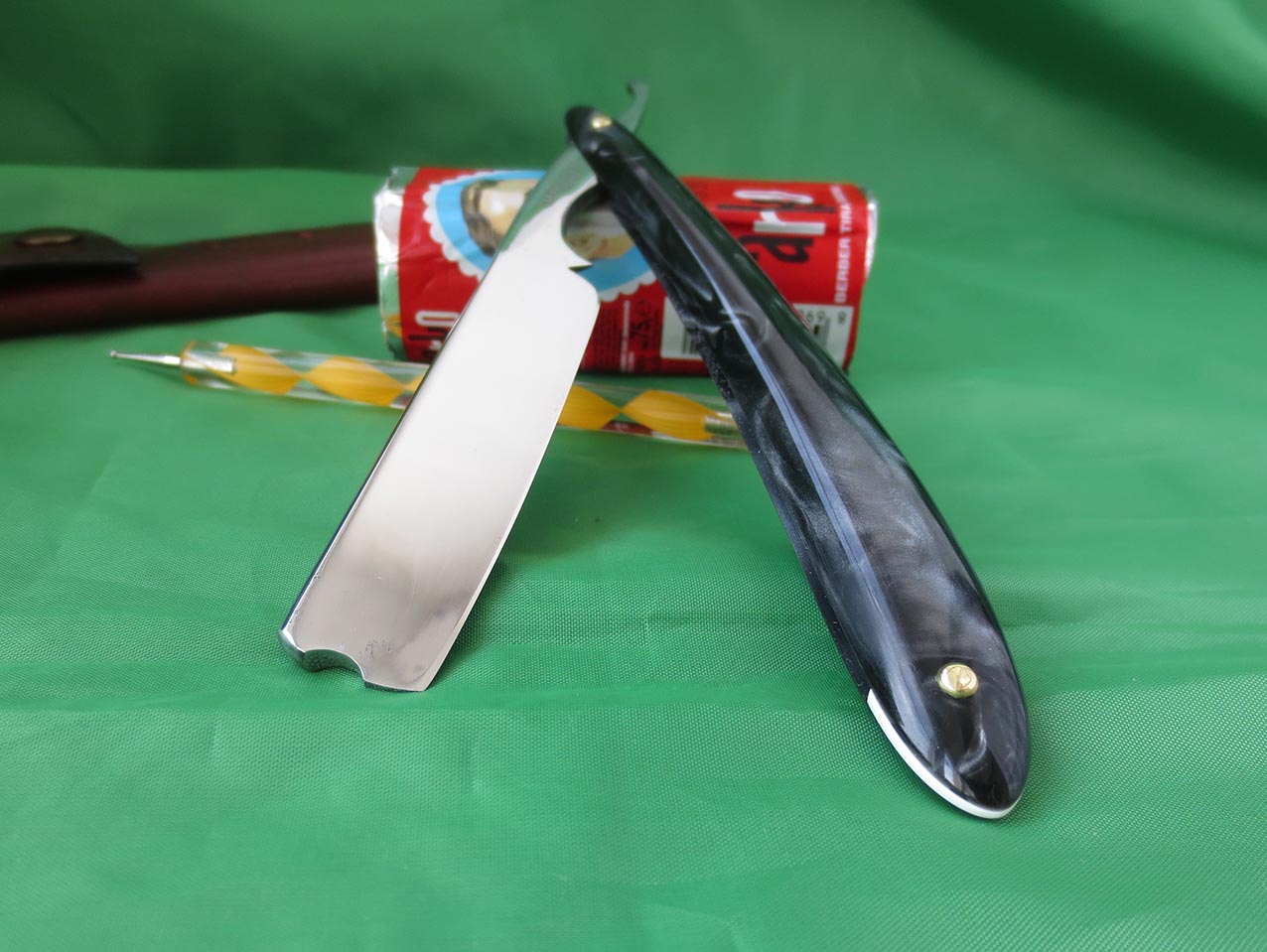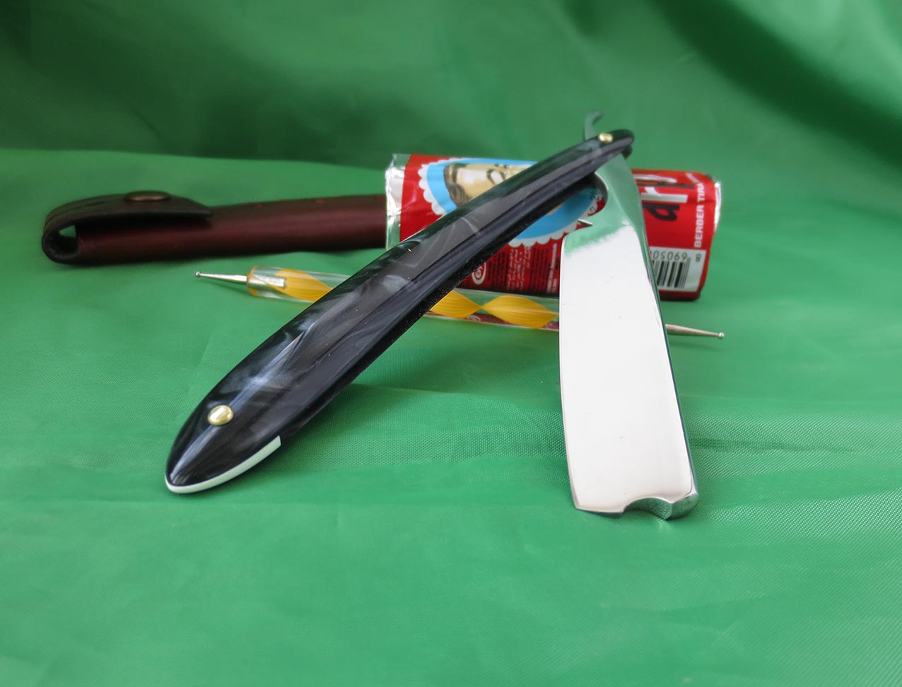 Год производства ориентировочно - 1920, г.Броктон, штат Массачусетс, США. Инструмент находится в отличном состоянии, хотя ему почти сотня лет. Клинок из углеродистой стали, ручка - целлулоид, имитация под слоновую кость. Полотна - 5/8 дюйма, самая универсальная ширина, как для обучения, так и для дальнейшего постоянного использования. Бритва заточена на японских водных камнях, направлена и полностью готова к борьбе с щетиной любой жесткости, тест на рез волоса при покупке без проблем. Сам оставил одну себе в коллекцию из-за крайне комфортного бритья. Рекомендую этот инструмент, как начинающим, так и бывалым брадобреям... При покупке ремня для правки и бритвы доставка по бескрайним просторам нашей родины будет для покупателя бесплатно. Цена американца - 6250 рублей.