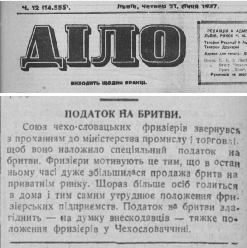 Союз чехословацких парикмахеров обратился с просьбой к министерству промышленности и торговли чтобы оно наложило специальный налог на бритвы.