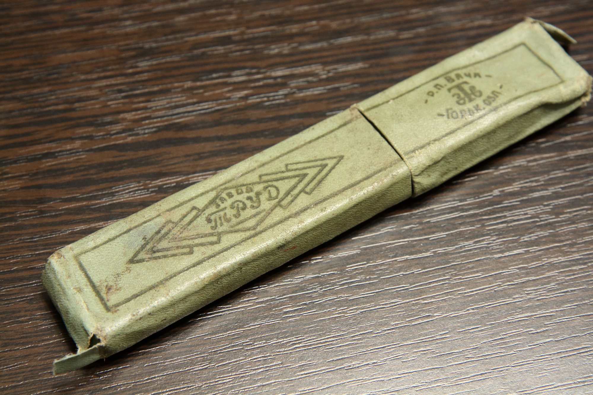 Опасная бритва Двухзаковая завода Труд (ЗТ) Вача, 1953 год. Ширина полотна 18.2 мм, все родное, футляр тоже. Бритву вручную почистил и заточил. Подготовлена мной к бритью. Модель Двухзаковая в 1953 году только появилась и писалась именно так, без буквы Н. Только с 54 года написание изменилось на более привычное - Двухзаковная. Не частая и довольно интересная бритва от завода Труд, бреет очень хорошо, качественная сталь (ближе к шведам, нежели к немцам). Цена - руб. К бритве рекомендую приобрести ремень для правки опасных бритв моего изготовления из итальянской кожи (подробнее на странице 4, объявления 56-58 и странице 9, объявления 127). Spoiler Show