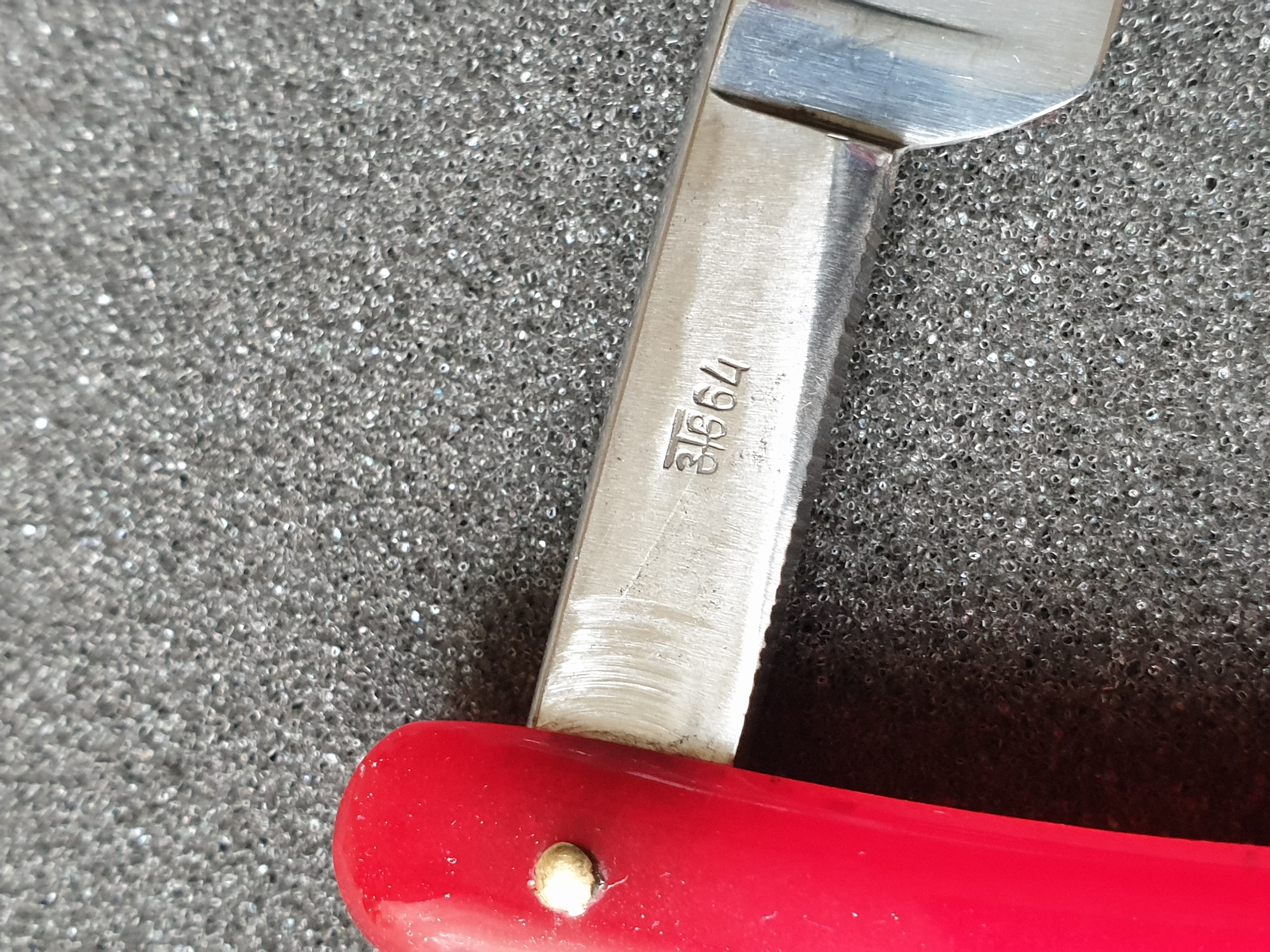 viewtopic.php?t=267&start=500 Размер 5/8, ручка из целлулоида с металлическими декоративными накладками. Все родное, бритва не разбиралась и не восстанавливалась, заводской гринд клинка. Сделана только свежая заточка на японских камнях, в комплекте родной футляр. Цена ПРОДАНО Spoiler Show