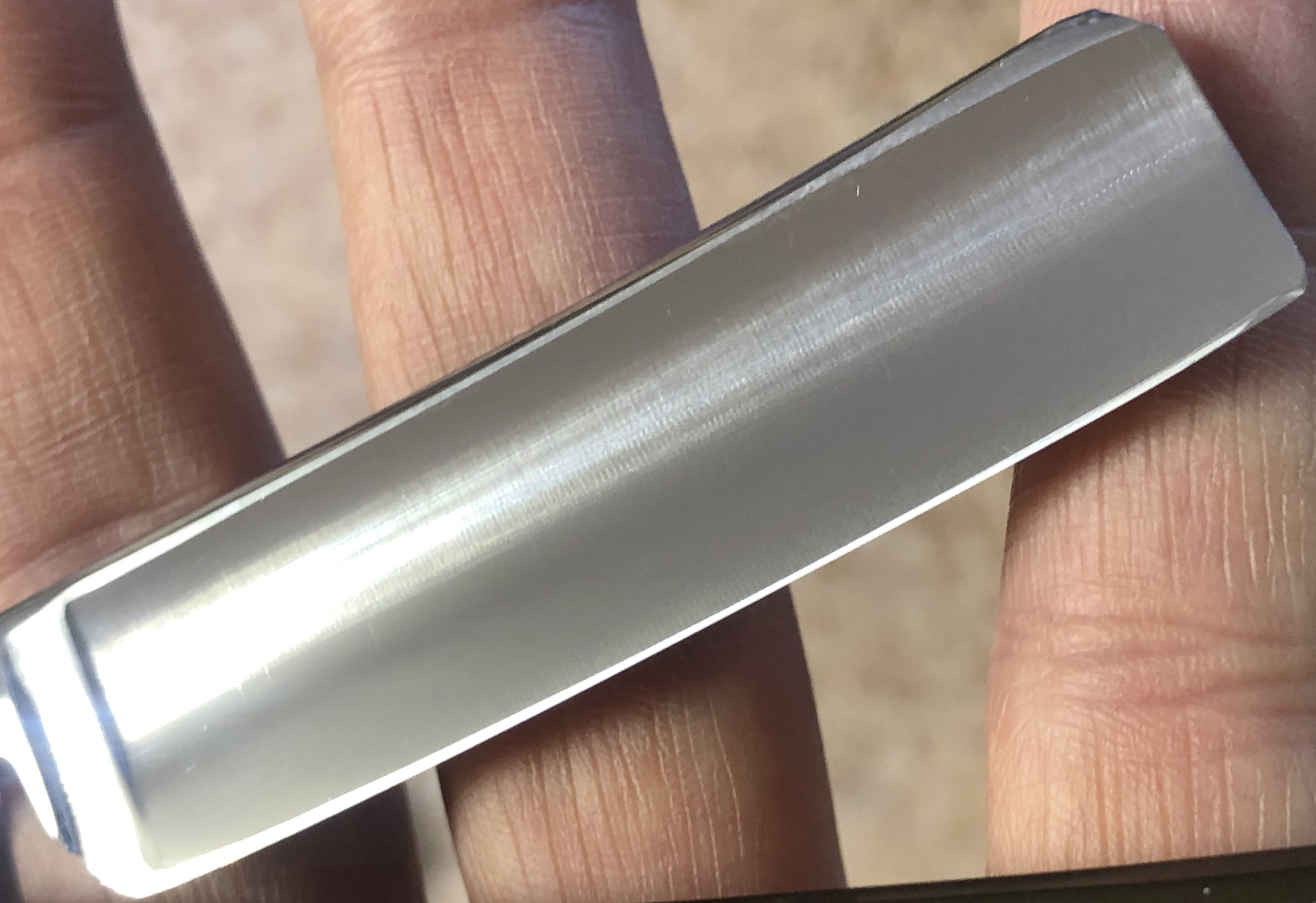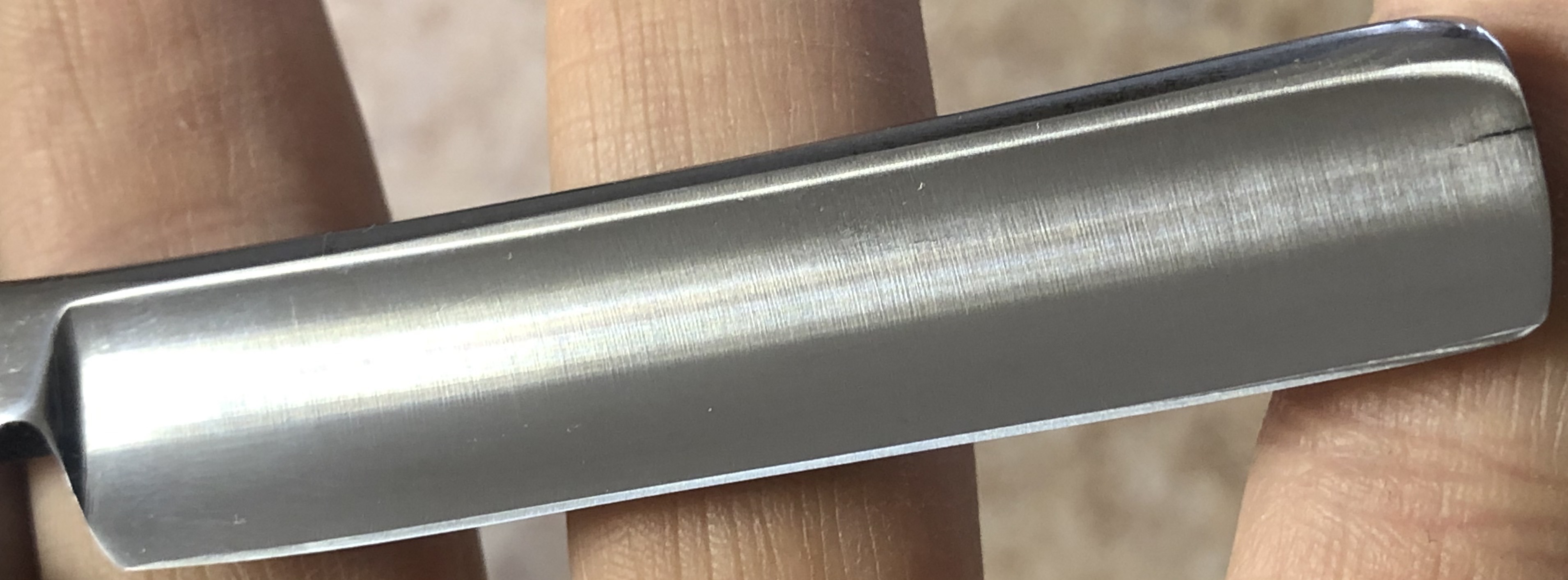 Бритва в идеальном состоянии,без следов пользования.С большой долей вероятности вообще не была ещё в деле.Не разбиралась.Немного освежил клинок от патины, на самых тонких абразивах и полирнул.Состояние новой бритвы.Идеальная геометрия:кромочка равномерна по всей длине.Сталь чистая, без дефектов.