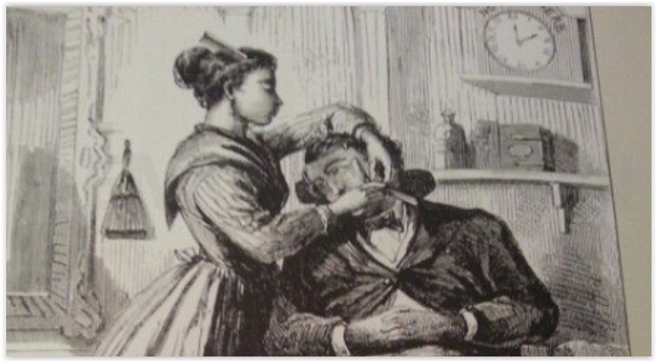 В отличие от цирюльного искусства, стоматология ещё ждала своего звёздного часа. А вот зубы, увы, ждать не могли. Редко кому даже ещё век назад удавалось сохранить безукоризненную улыбку на долгие годы. Ну, а после сорокалетнего возраста таких практически не оставалось (кстати, как вы помните, те же цирюльники нередко выступали и в роли стоматолога-хирурга, помогая страждущим от зубной боли. Делали они это весьма категорично — удаляя причину при помощи клещей). Так вот, в какой-то момент зубов становилось так мало, что щёки клиентов начинали западать внутрь. И к чему это могло привести? Правильно! К тому, что неумелый мастер мог лезвием бритвы поранить посетителя. Особенно переживали по этому поводу мальчишки-подмастерья, которым начинали доверять обслуживание клиента именно с бритья.