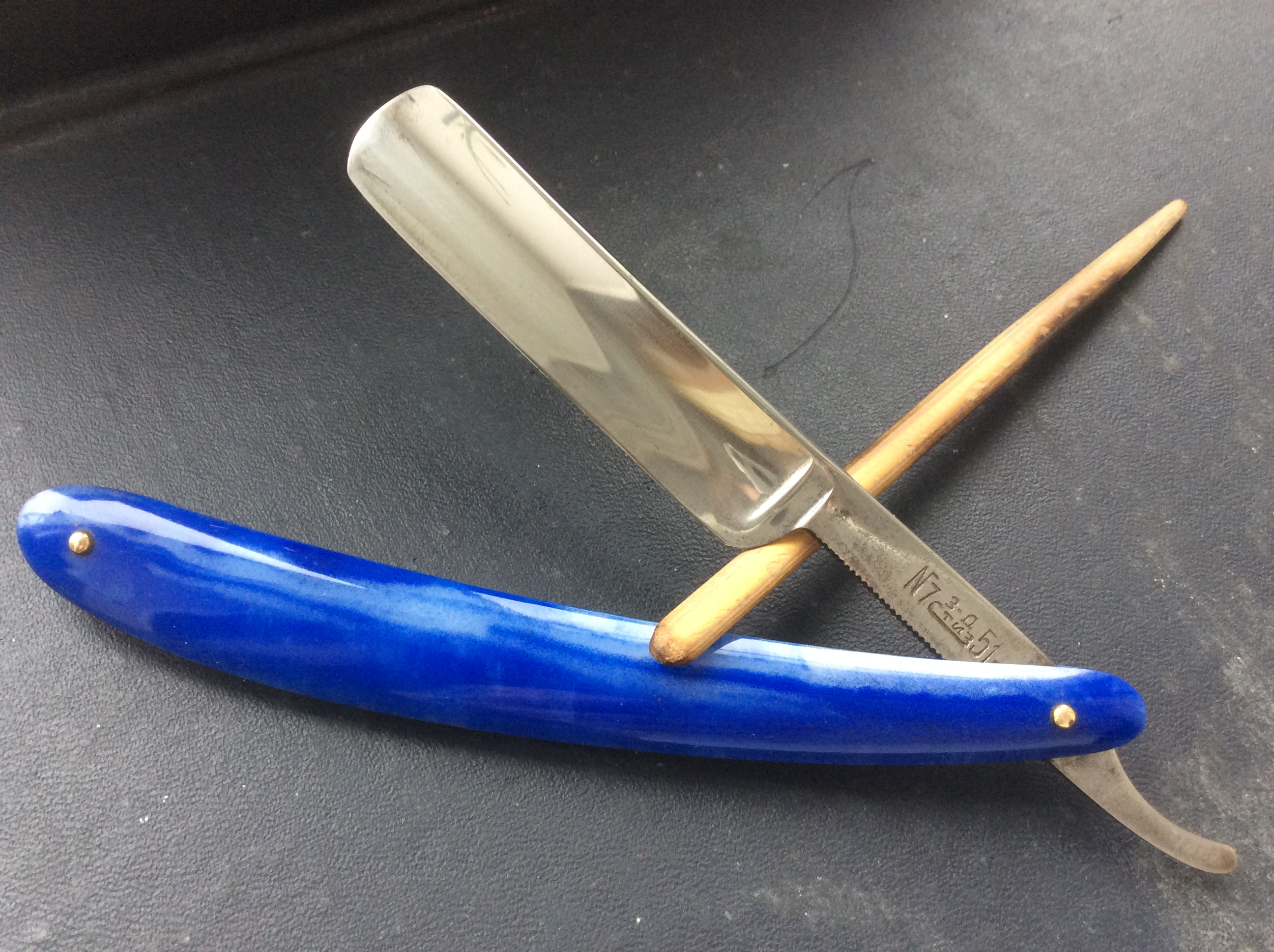 Продаётся от sergeyt3770ПРОДАНО. Советская бритва №7 от завода Стиз, 1951 года выпуска. Размер 11/16 (ширина 17 мм., толщина 4.2 мм.). В использовании не была. Не разбиралась, всё родное. Клинок закрывается по центру, не болтается. На клинке имеется патина в виде небольших потемнений. Вылизывать ничего не стал, т.к. на бритьё это не влияет, но доказывает, что с бритвой никаких манипуляций кроме заточки не производилось. На клинке заводской гринд и линия от электрохимической заточки. Сталь великолепного качества, в заточке показала себя превосходно. В комплекте родная коробочка в отличном состоянии. Бритва заточена и готова к работе.