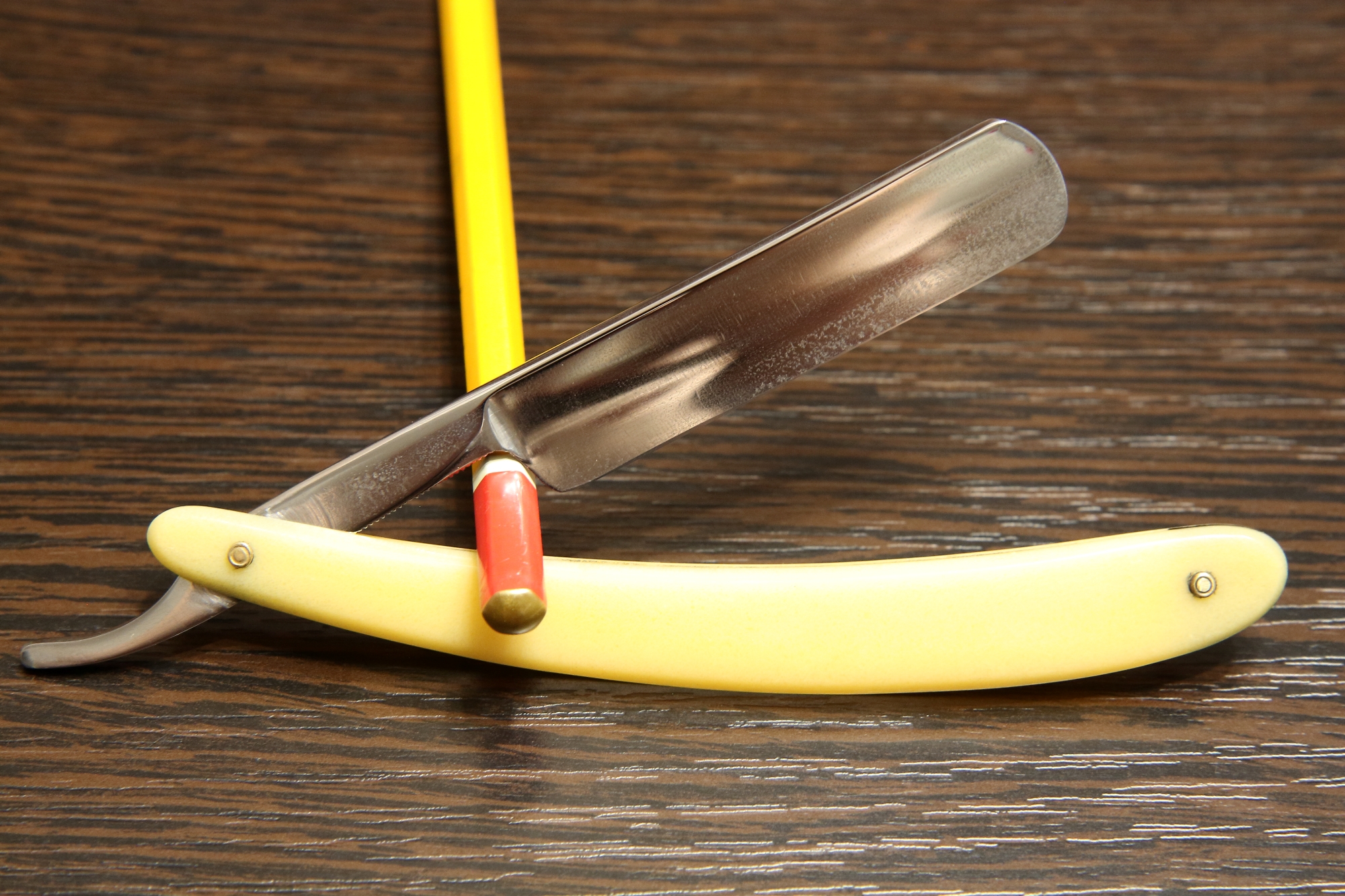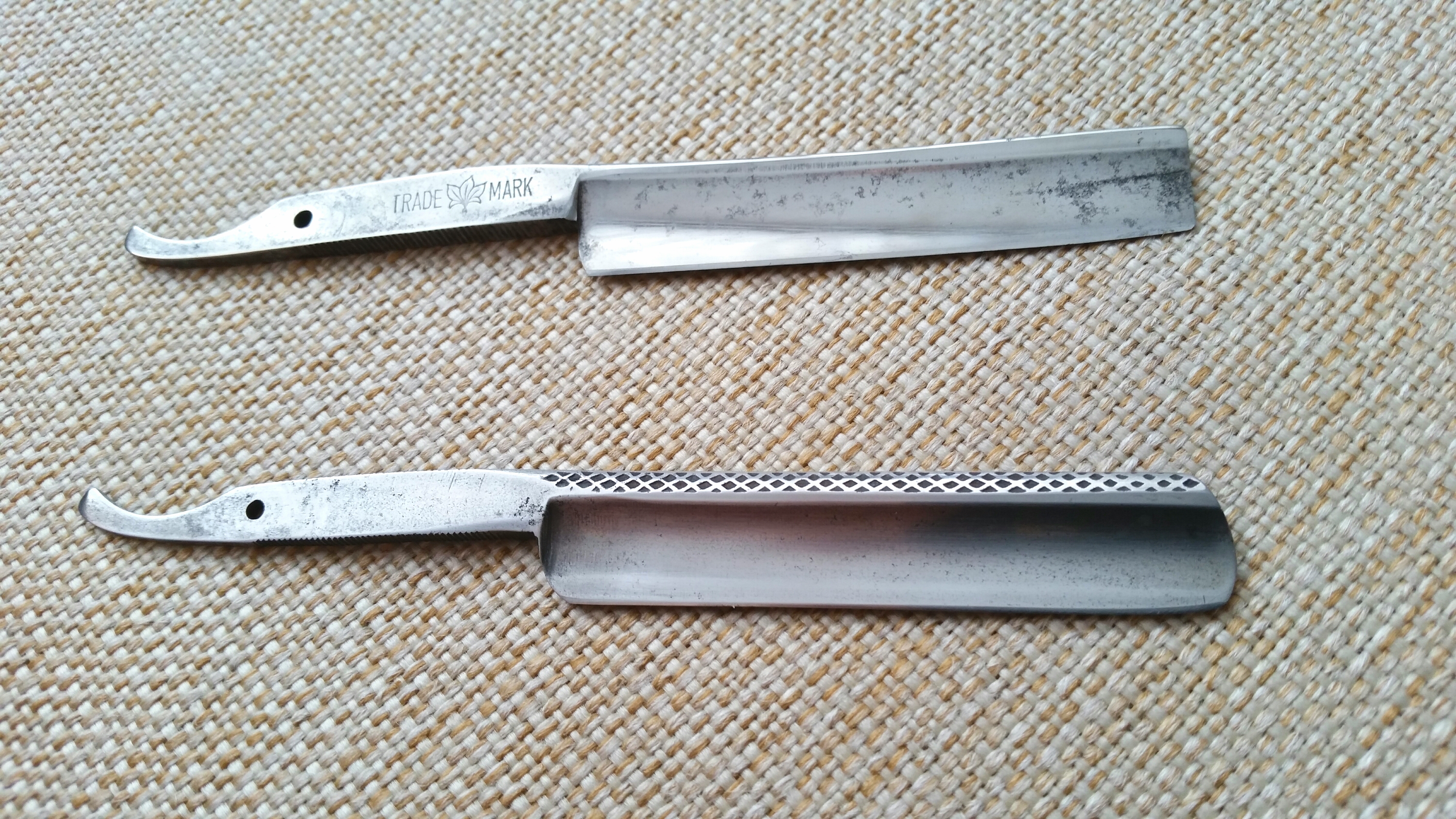 Опасная бритва Парикмахерская №1, завод ЗТВ (Вача), 1959 год. Ширина полотна 17.5 мм у пятки и до 16.7 у носа, все родное, футляр тоже. Пришла с некоторыми следами, бритву вручную почистил и заточил. Подготовлена мной к бритью. Модель Парикмахерская встречается очень редко, т.к. в свободной продаже их не было, поставлялись только в цирюльни. Сталь твердая, бреет несколько дубовато, но хорошо держит кромку. Цена - руб. К бритве рекомендую приобрести ремень для правки опасных бритв моего изготовления из итальянской кожи (подробнее на странице 4, объявления 56-58 и странице 9, объявления 127). Spoiler Show