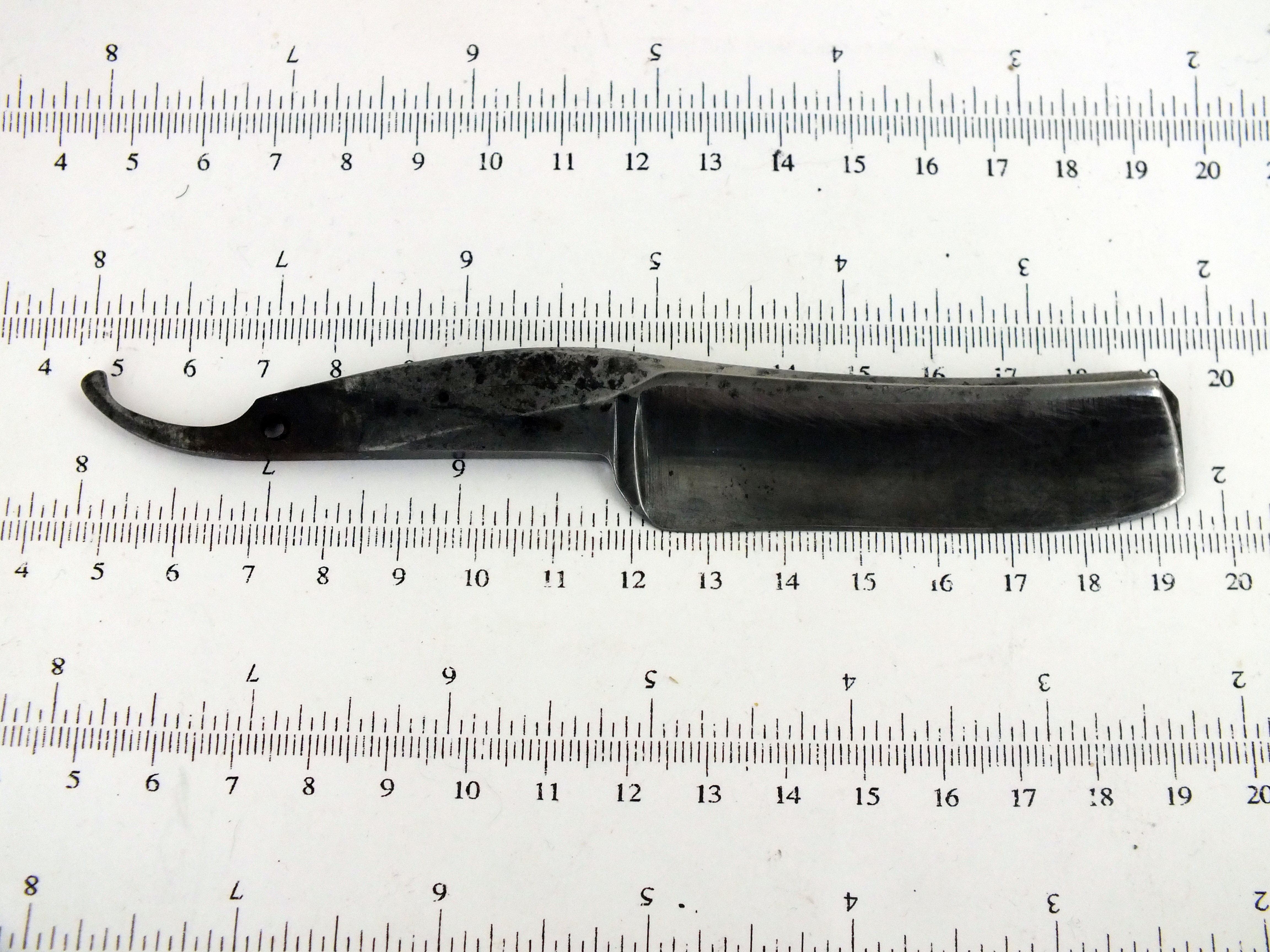 Бритва до... и после..."Протёр тряпочкой"сегодня одного почтенного и мощного немца.Клинок изначально был подвергнут попытке неправильной и грубой заточки, что привело к образованию у кромки большого количества глубоких рисок, которые нужно было аккуратно свести, чтобы не уточить вусмерть клинок, либо не довести металл до состояния фольги, при котором невозможно было бы нормально заточить бритву.Вроде все прошло удачно, и старичок ещё может послужить..