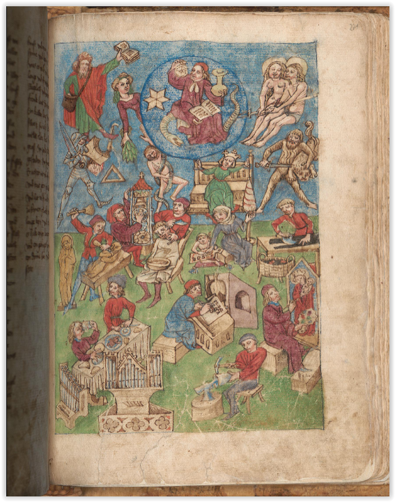 „Tübinger Hausbuch: Iatromathematisches Kalenderbuch; die Kunst der Astronomie und Geomantie”, 15th century.