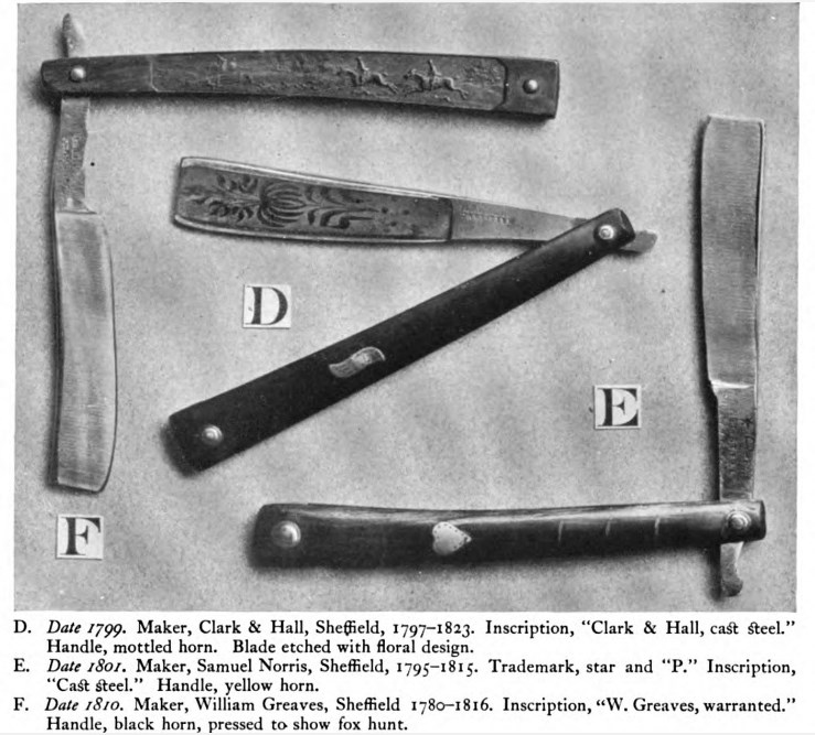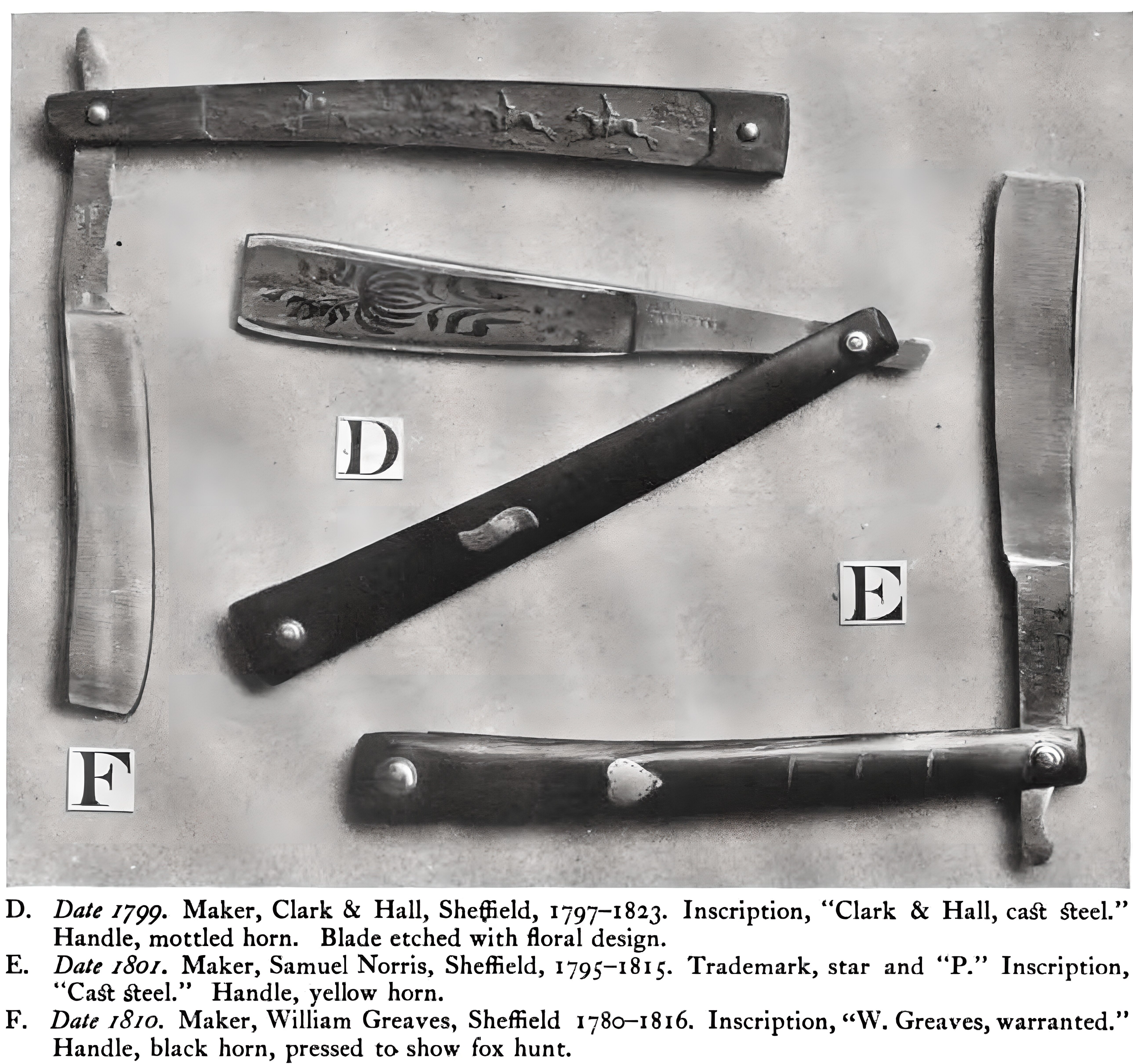В начале девятнадцатого века одной из часто упоминаемых фирм была Clark & Hall (1707-1823). Чуть позже заслуженную популярность получили бритвы John Barber (1810-1834).