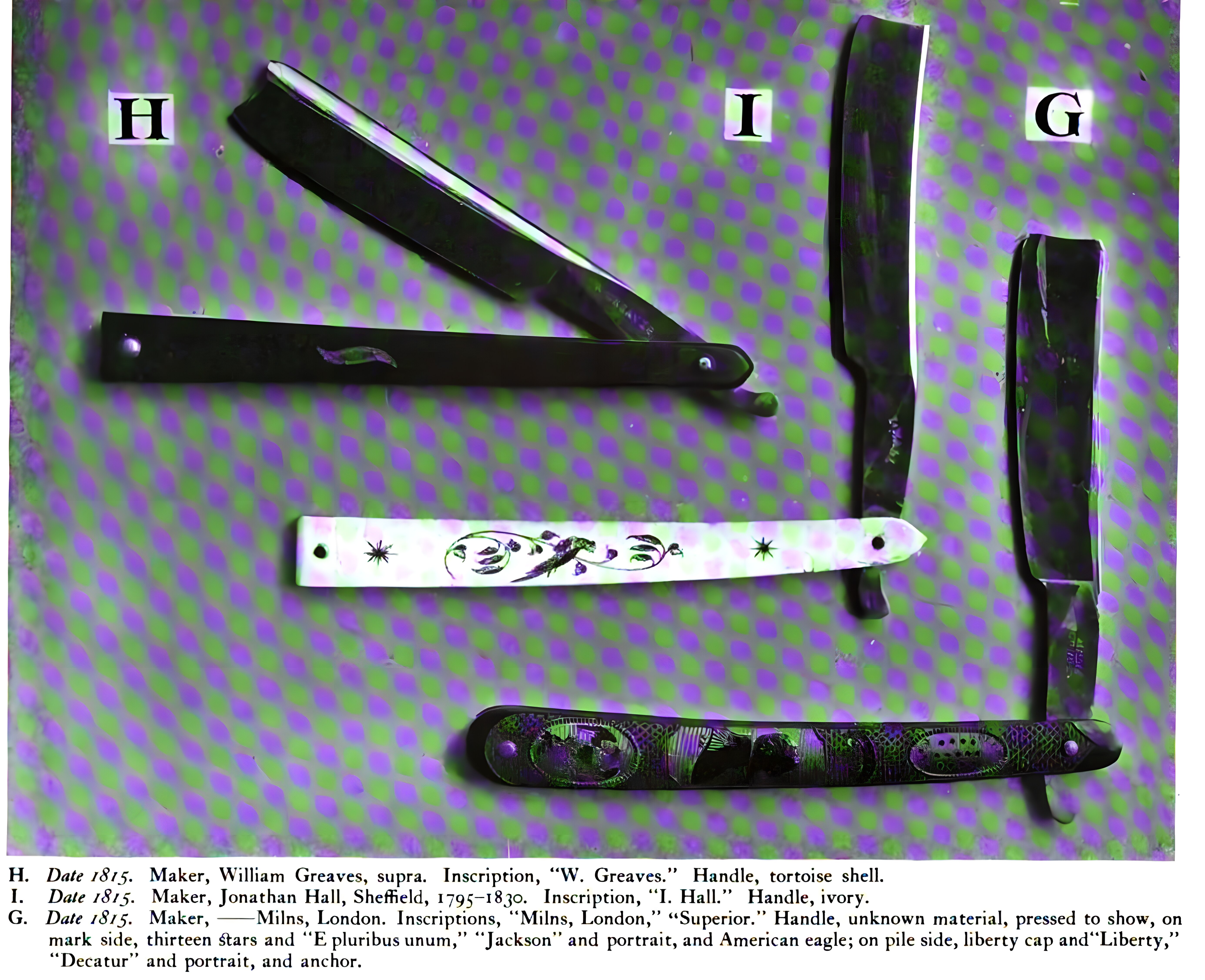 Период между 1820 и 1833 годами является самым интересным для коллекционера. Хотя Ebenezer Rhodes, примерно в 1821 году и написал статью, в которой сожалеет об упадке искусства изготовления бритв, но факт остается фактом: более изящных и красивых бритв, чем те, которые датируются периодом между 1820 и 1833 годами, никогда не производилось.