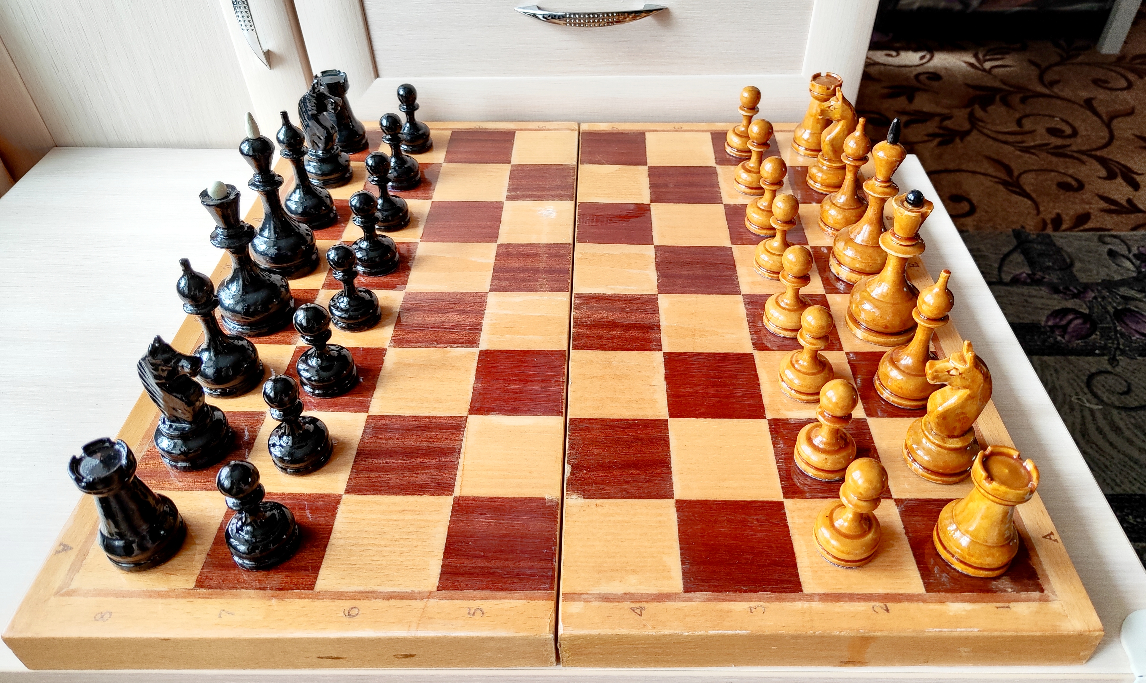Наше прочее хоббиВ игре сейчас такой комплект: гроссмейстерские утяжеленные конца 70х, из работ только поменял подложки на мебельный кожзам и покрыл доску. Остальное родное. Доска 45х45 см