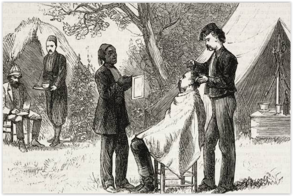 „The barber in the Turkish camp, near the Danube river, Lom city, Bulgaria, Russo-Turkish War, 1877,