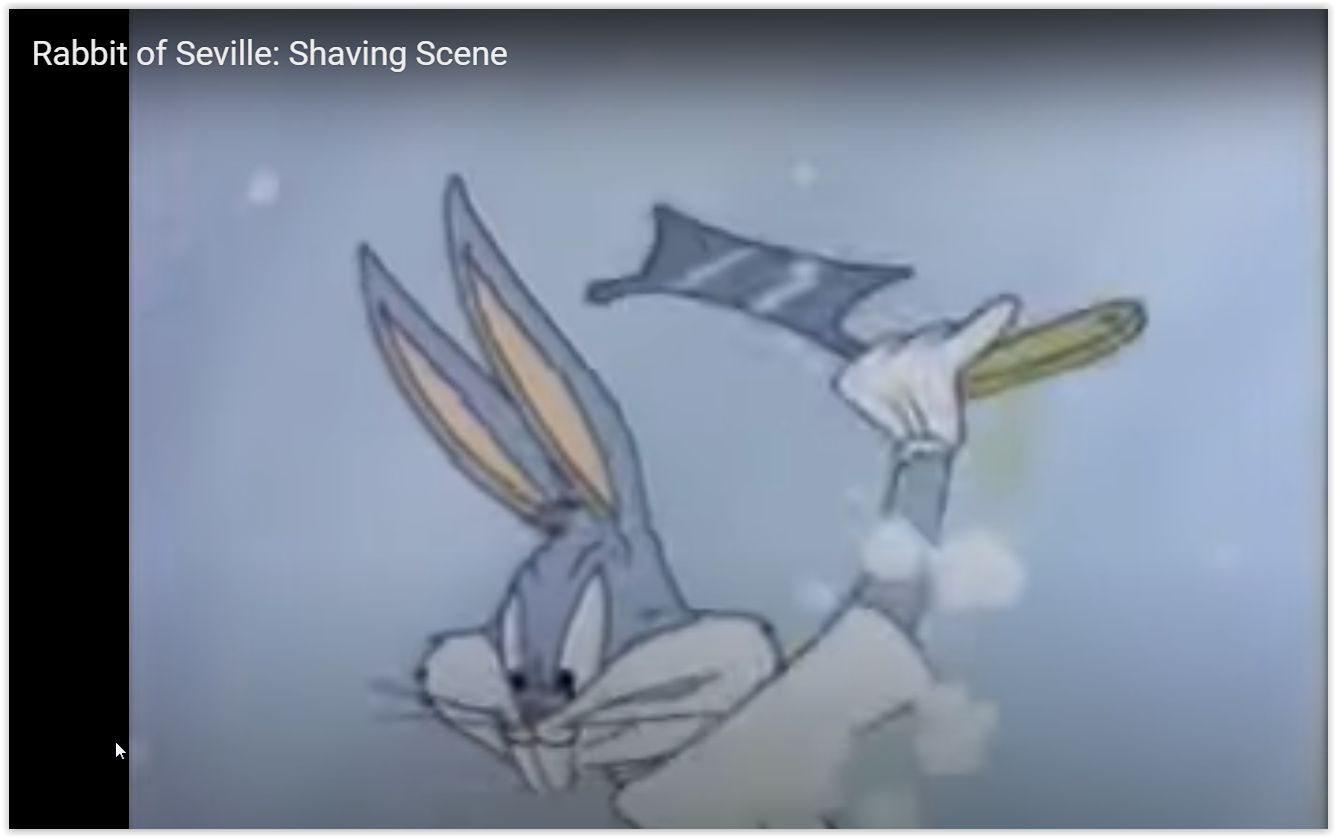 США 1950 г., мультфильм Занимает 12 место в списке 50 величайших мультфильмов. Режиссёр: Чак Джонс В главных ролях: Багз Банни и Элмер Фадд Ссылка с привязкой ко времени: „The Barber of Seville”, „Севильский цирюльник” США 1944 г., мультфильм Занимает 43-е место в списке 50 величайших мультфильмов. Режиссёр: Шамус Кулхейн В главной роли: Woody Woodpecker - Вуди Вудпекер (в переводе - дятел Вуди) (Ради правды, надо сказать, что мультик упоминается в теме, но без надлежащей информации). Ссылка с привязкой ко времени: С 2013 г. с кайфом бреюсь опасной бритвой пять раз в неделю, в три прохода.