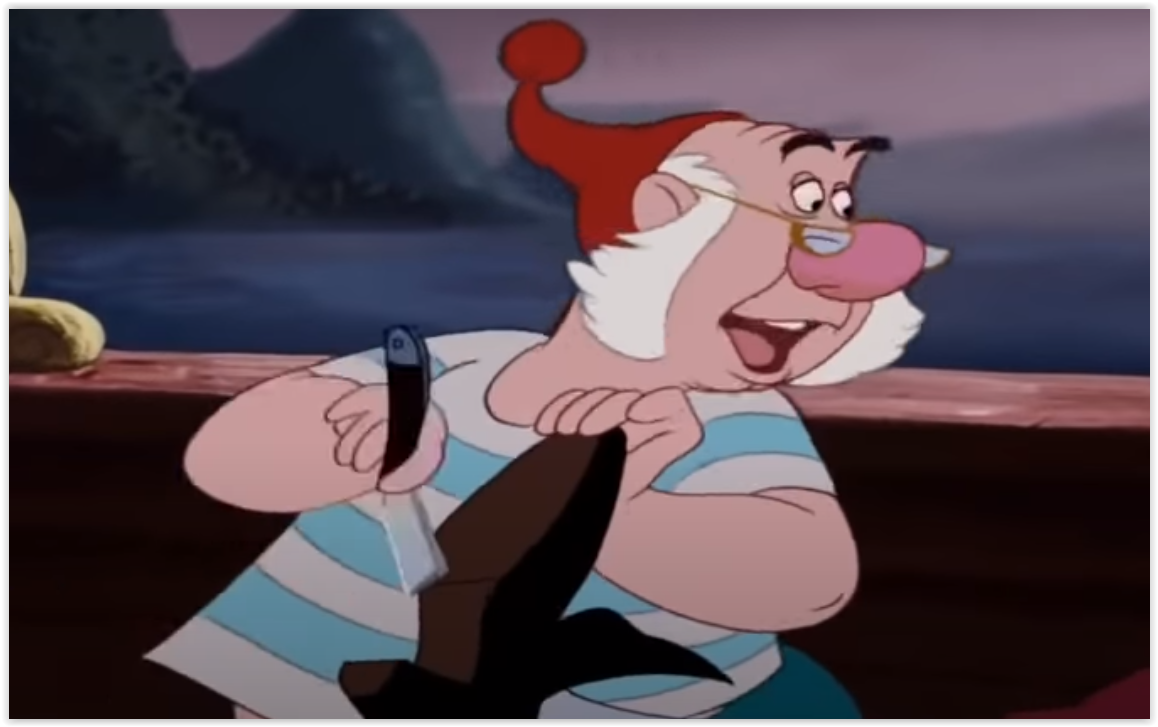США 1953 г., мультфильм Режиссёры: Клайд Джероними, Уилфред Джексон, Гамильтон Ласк В данной сцене участвуют: мистер Сми, капитан Крюк и чайка. Ссылка с привязкой ко времени: Специально для тех, кто хотят посмотреть весь мультфилм, вот пожалуйста, ссылка на официальном ресурсе „disneycartoonsonlineforfree”, сцена бритья на 25м.07с.: https://disneycartoonsonlineforfree.blo ... nline.html Правка бритвы на подошве: Бритье жопы чайки: