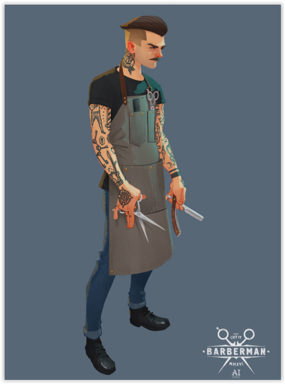 „Prof. Ramos and The Barber” „Проф. Рамос и цирюльник” Энди Иванов (Andy Ivanov) - современный молодой украинский цифровой сюжетный художник из Харькова. „Barberman” „Парикмахер” С 2013 г. с кайфом бреюсь опасной бритвой пять раз в неделю, в три прохода.