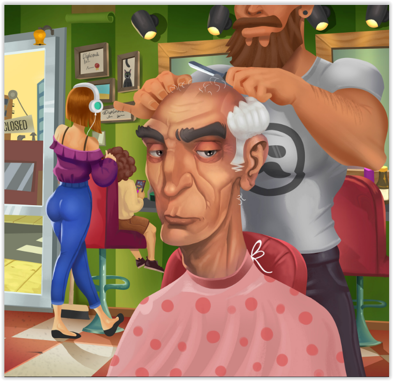 „Oldman in a Barbershop” „Старик в барбершопе” Hugo Aubert (Хьюго Обер) - современный молодой испанский художник по 3D персонажам из Валенсии. „Wild West Challenge” „Вызов Дикого Запада”