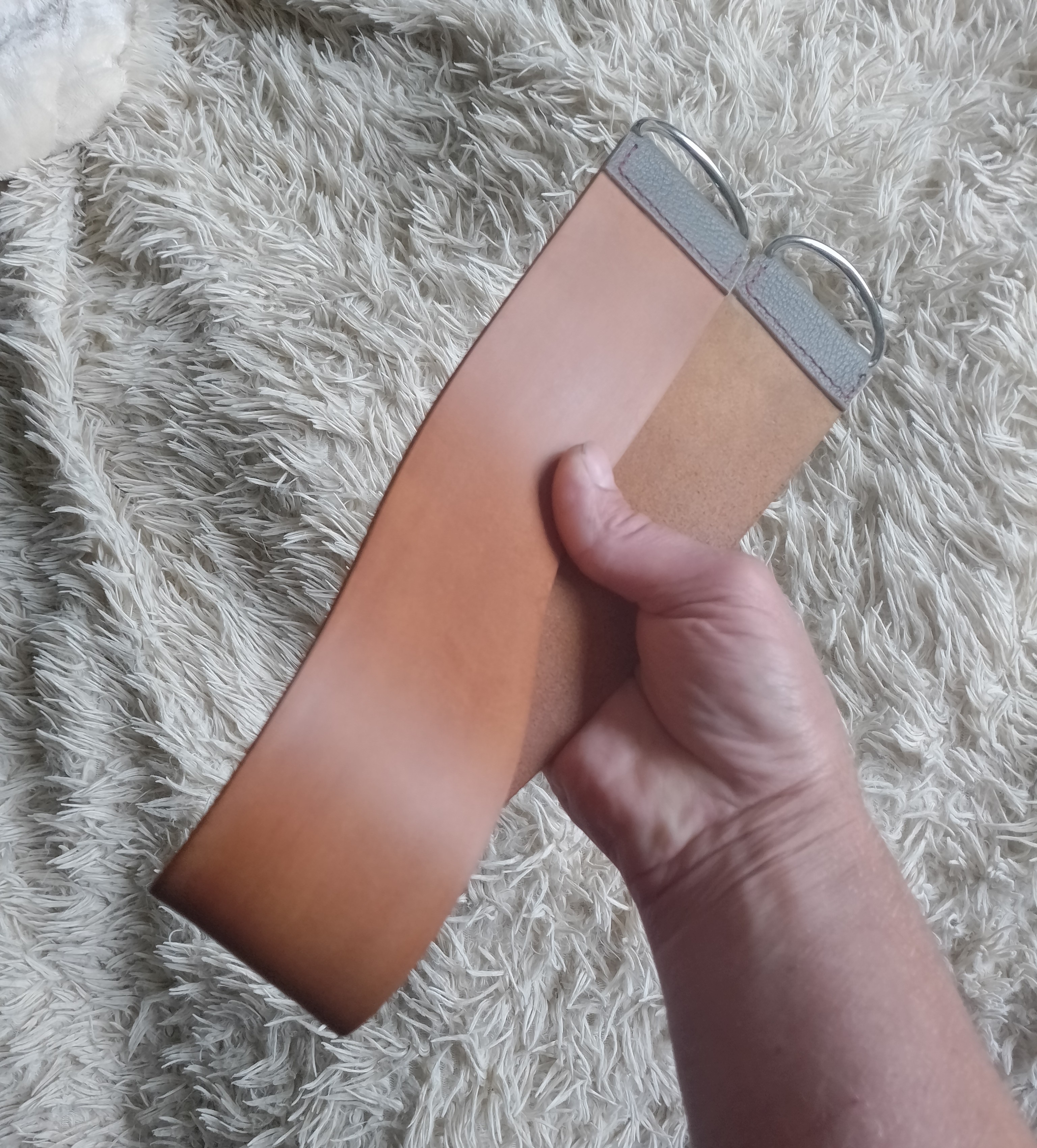 Ремонт ремняПодарили мне тут конский ремешок десяток лет назад изготовленного отечественным мастером. Ну и я решил привести его в порядок. Снёс восковый глянец наждачкой 100#. И дальше до 2000#.