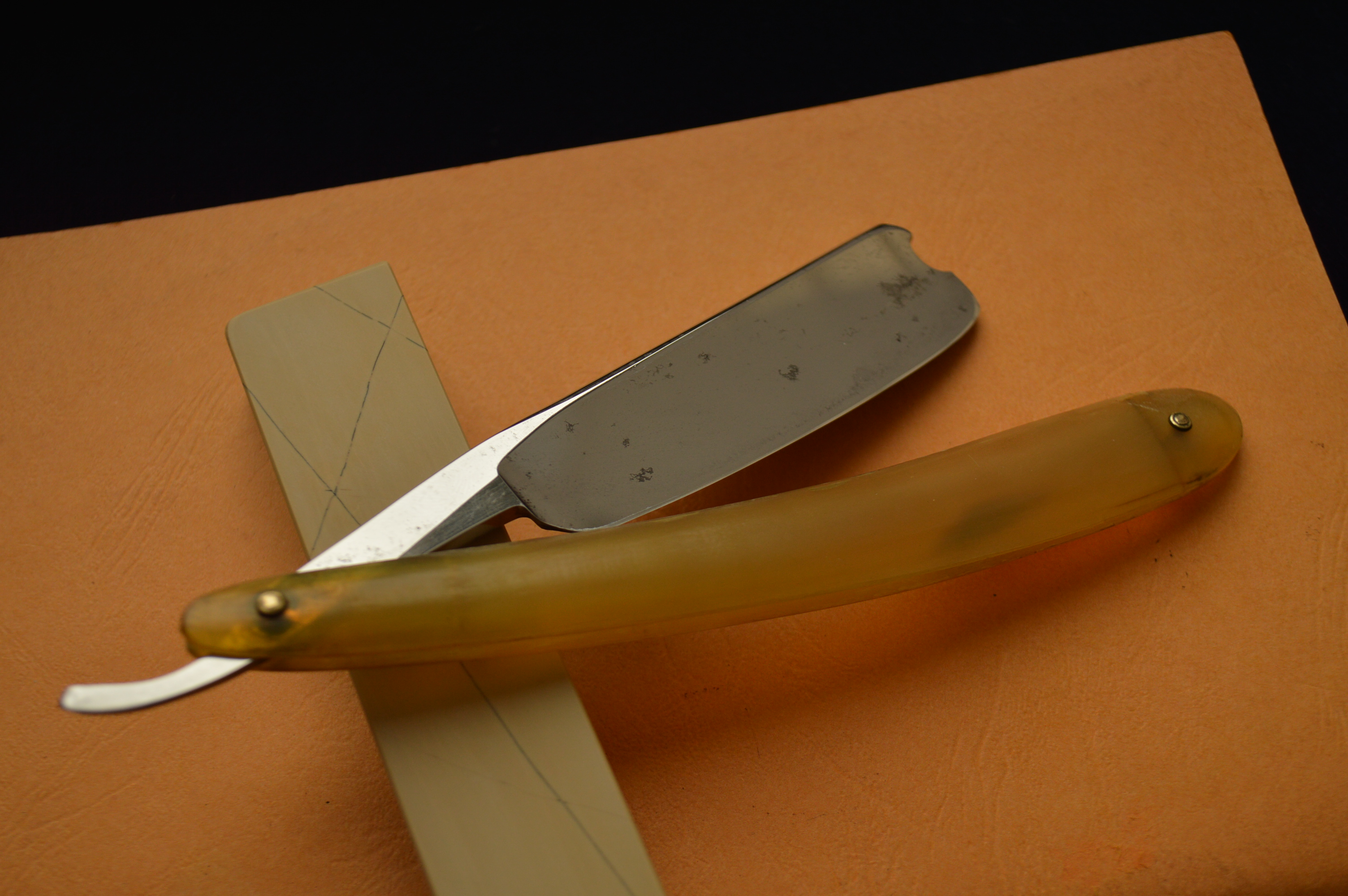 Spoiler Show Один из тех производителей, который имеет очень большую армию поклонников по всему миру, бритвы пользуются спросом среди почитателей бритья клинковой бритвой по всему миру. При этом в продаже появляются крайне редко. Бритва клин в хорошем состоянии ширина полотна – 6/8, длина по кромке 8 см, массивный образец старой Англии, очень редкая и в то же время удобная форма полотна имеет правильную легкую улыбку, которая образуется посредством сужения полотна к носику, что лучшим образом влияет на комфорт при бритье. Редчайший испанский носик, обратные спуски по обуху к его вершине, ручка рог изумительной формы и исполнения украшена инкрустацией. Бритва заточена для бритья, а не для полки. Бритва, как и все иные бритвы этого производителя, бреет прекрасно, сделанная из лучшей английской литой уклеродки готова мягко выбрить любую щетину. Очень редкий экземпляр, который станет прекрасным украшением любой коллекции, будет отличным вариантом в повседневной работе. Бритва полностью разбиралась и чистилась с последующей сборкой, ручка рог имела потери, сейчас все восстановлено и будет служить долго и надежно, Сама бритва несет в себе всю всою историю, все отметки времени на ней оставлены сознательно, все это и добавляет шарма и дает понимание того, что в руках действительно незаурядная 200-летняя вещь. Spoiler Show