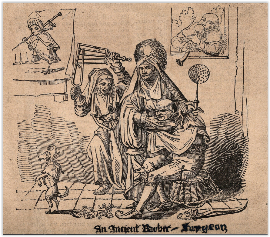 „An ancient barber-surgeon” „Древний парикмахер-хирург” 1477 г. Theodor Hosemann (1807-1875) Теодор Хоземанн - немецкий живописец, рисовальщик, иллюстратор и карикатурист. „A barber shaving a man in a candlelit bedroom” 19 век. „Парикмахер бреет мужчину в спальне при свечах” С 2013 г. с кайфом бреюсь опасной бритвой пять раз в неделю, в три прохода.
