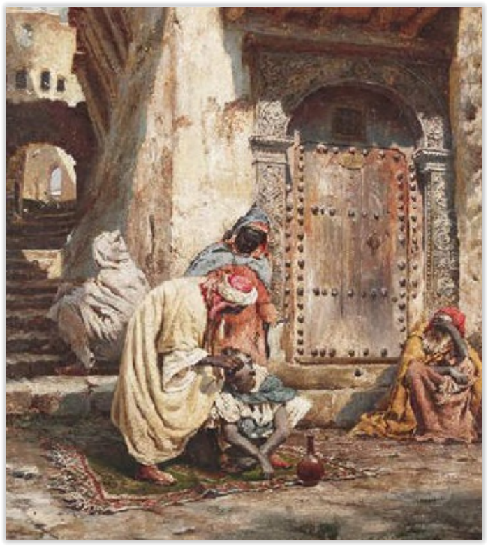 „Barbier in den Straßen einer orientalischen Stadt” "Цирюльник на улицах восточного города” Взглянем немного поближе. С 2013 г. с кайфом бреюсь опасной бритвой пять раз в неделю, в три прохода.
