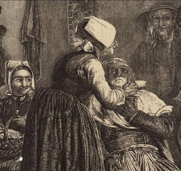 „The Fisherman-Barber shaving at Stock” „Рыбак-цирюльник бреет мужчину на складе” 19 век. Взглянем поближе: