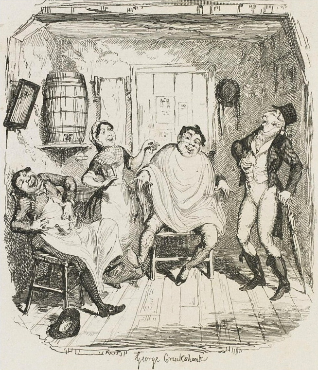 George Cruikshank (1792-1878). Джордж Крукшанк был британским карикатуристом и книжным иллюстратором. „The Barbers Shop” „Цирюльня” Взглянем поближе: С 2013 г. с кайфом бреюсь опасной бритвой пять раз в неделю, в три прохода.