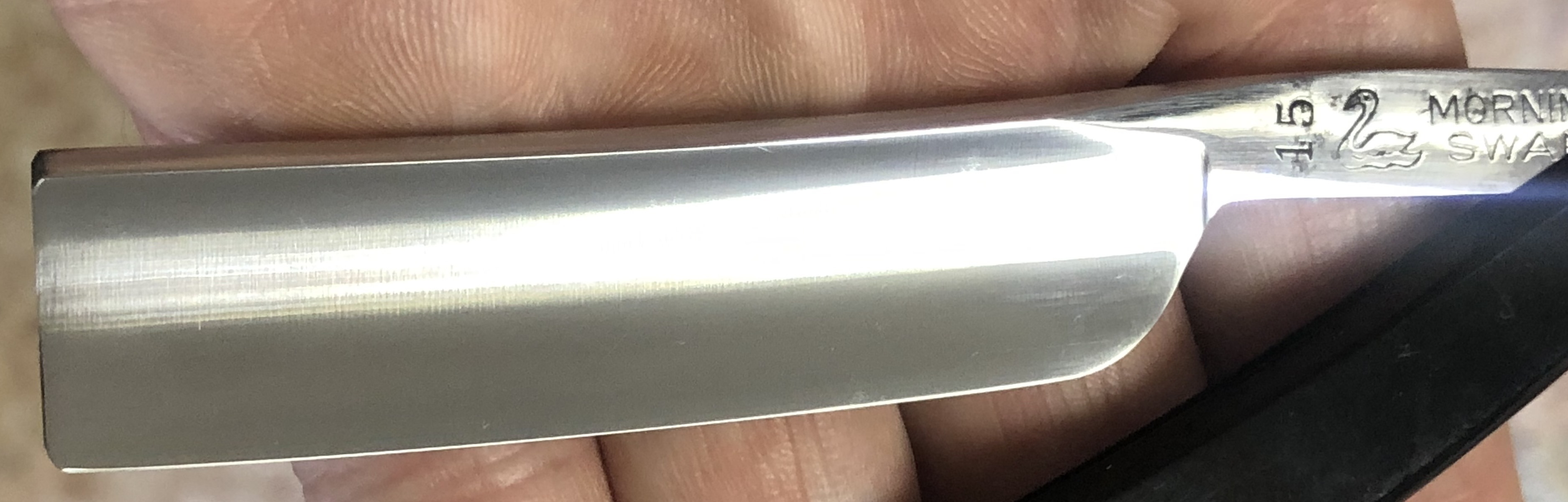 Достаточно не часто встречающаяся форма лезвия, с экстра полной вогнутостью.следов пользования не заметил.Разобрал, немного освежил металл и снова собрал.Идеальная геометрия полотна.Шведская сталь на клинке, как одна из самых удачных.Металл чистый от разного рода видимых дефектов.Отличная парикмахерская бритва, для профессионального использования, способная выдавать очень качественное и чистое бритьё.