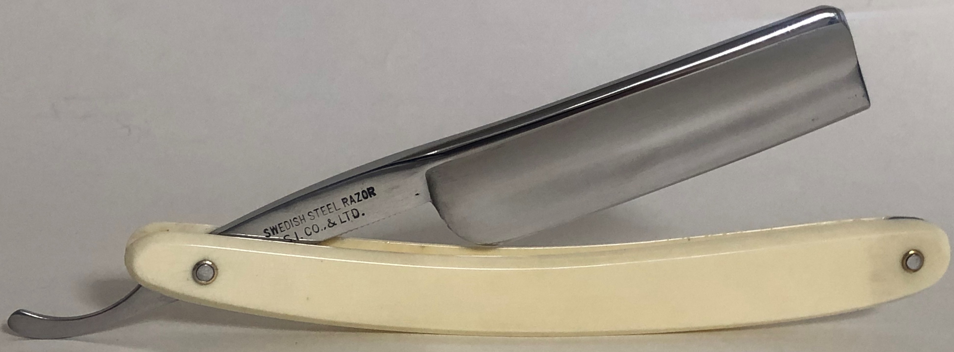 Достаточно не часто встречающаяся форма лезвия, с экстра полной вогнутостью.следов пользования не заметил.Разобрал, немного освежил металл и снова собрал.Идеальная геометрия полотна.Шведская сталь на клинке, как одна из самых удачных.Металл чистый от разного рода видимых дефектов.Отличная парикмахерская бритва, для профессионального использования, способная выдавать очень качественное и чистое бритьё.