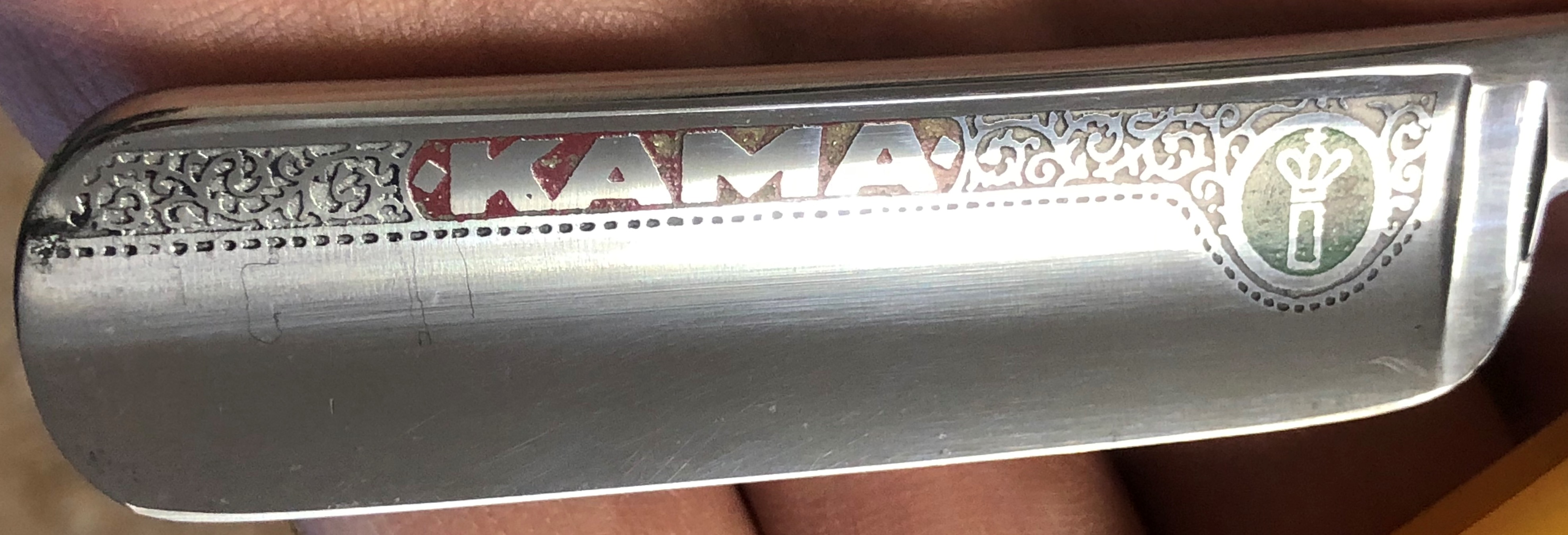 Касаемо самой бритвы, то она была разобрана, немного освежено полотно и снова собрана, с сохранением внутренних шайб и оригинальных пинов. Удобная форма клинка, со скошенной пяткой, с идеальной геометрией. Стал и кромка чистые,без дефектов.Надёжная, качественная вещь.