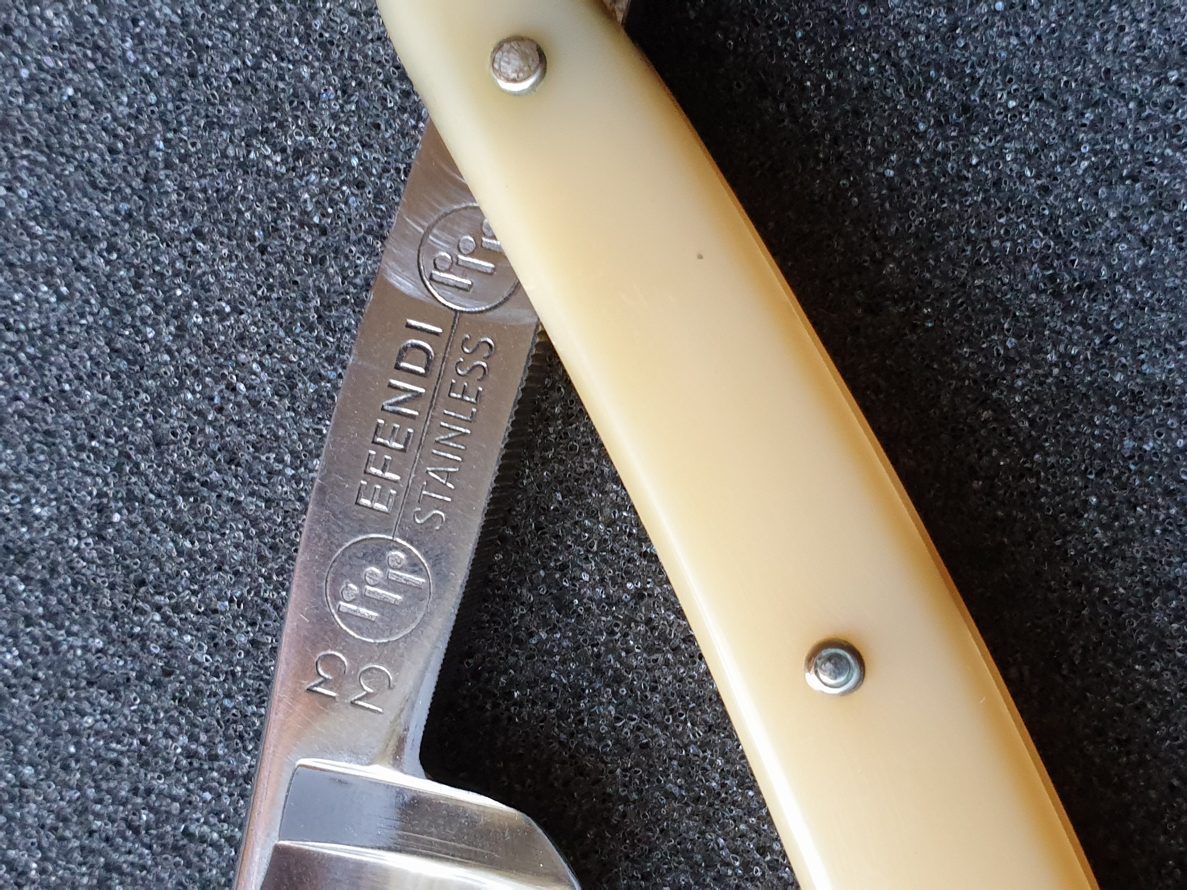 Продаётся от S&T95. Золинген, Efendi 33 Stainless. Ширина клинка 20мм, отличная геометрия с тонкой кромкой. Великолепно сохранившийся экземпляр без коррозии и уточенности. Все родное, бритва не разбиралась и не восстанавливалась. Сделана свежая заточка на японских камнях.
