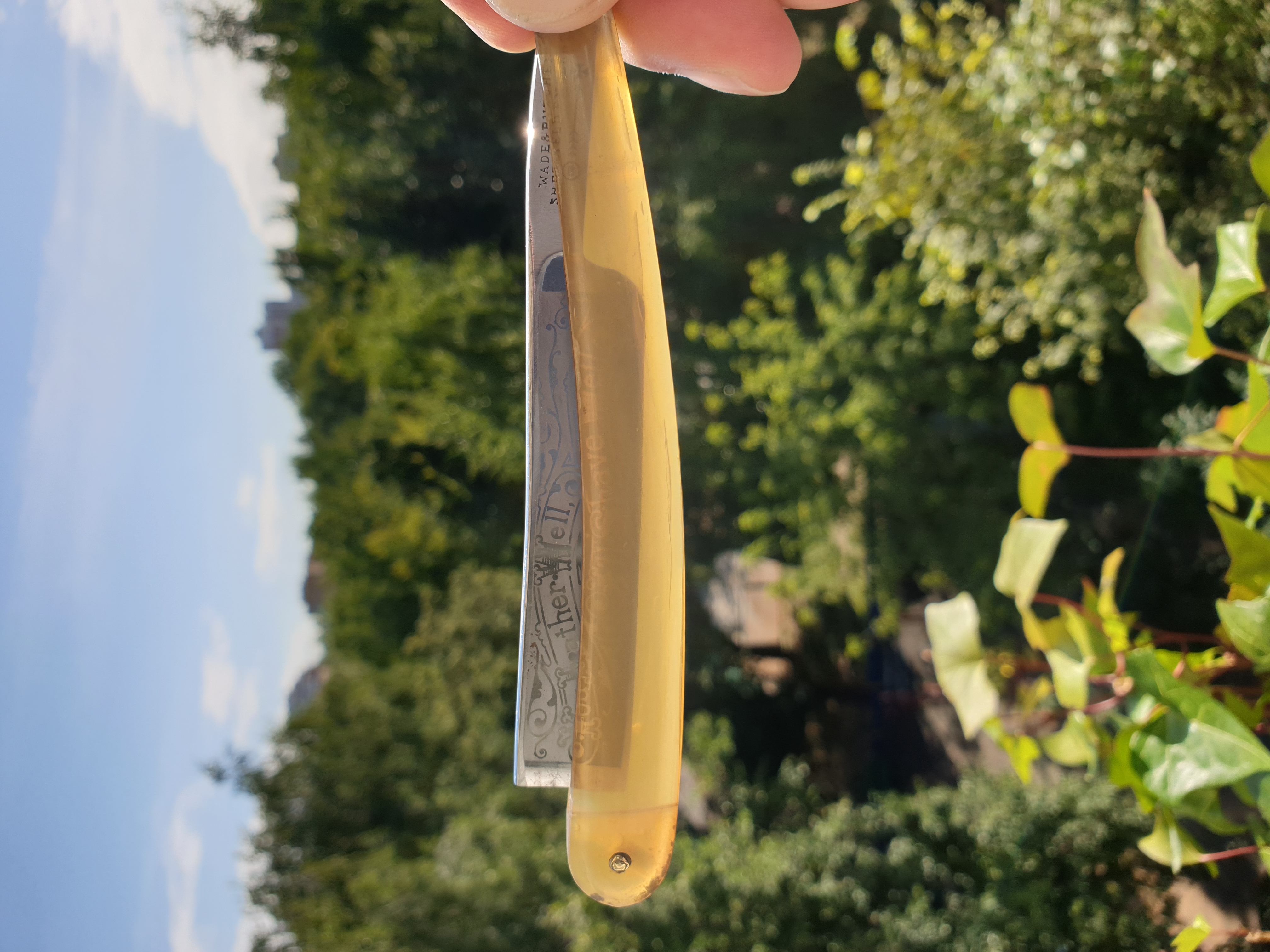 Продаётся от S&T98. Manufactured by Wade&Butcher Sheffield. Ширина клинка 18+мм, ручка - целлулоид. Небольшой исторический производственный "шрам" на клинке. Родной футляр в комплекте. Бритва была разобрана, почищена и заточена.