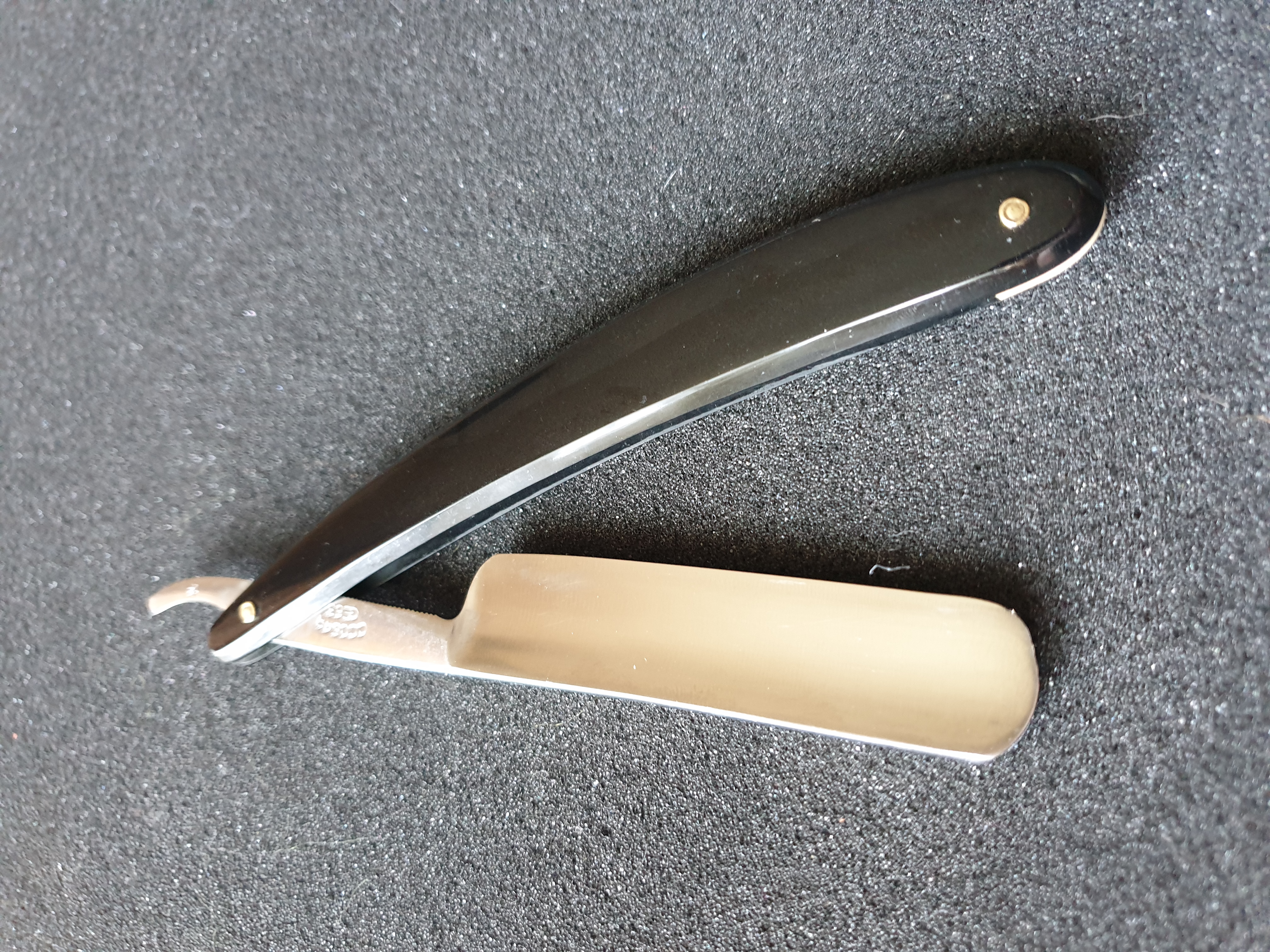 Продаётся от S&T100. Bengall, Шеффилд, XIX век. Форма - клин, ручка из рога с клинышком из олова, ширина клинка 15мм, все родное, ручка без выгрызов и прочих дефектов, отличная геометрия клинка, бритва не разбиралась, не шкурилась, сделана только свежая заточка на японских камнях.
