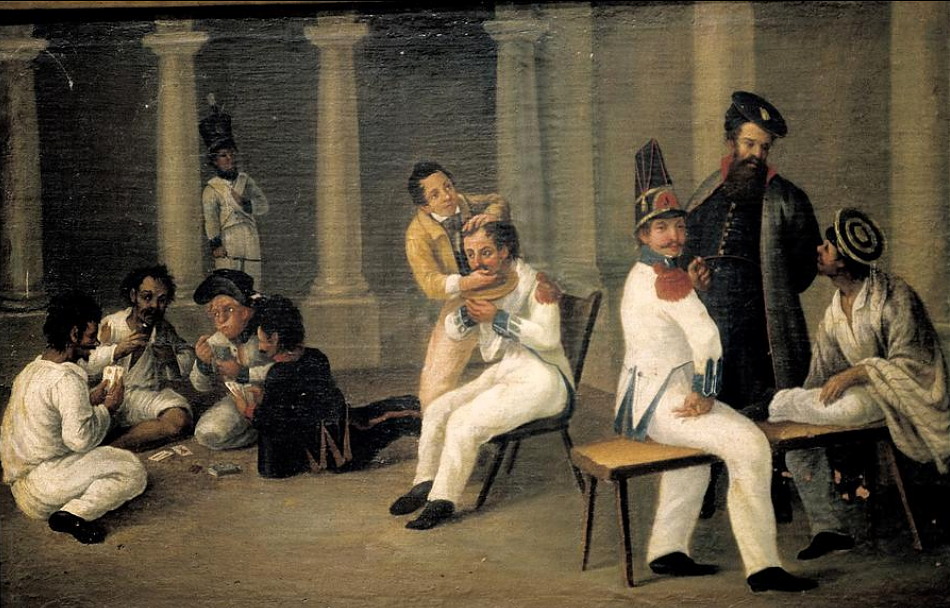 Мне везет, вот еще одну картину. Josе Agustin Arrieta (1803-1874) Хосе Агустин Арриета был мексиканским художником-жанристом, известным своими сценами повседневной жизни в Пуэбле девятнадцатого века, городе, в котором он прожил большую часть своей жизни. „Portals of the Main Square of Puebla” „Порталы главной площади Пуэблы” 1840 г. С 2013 г. с кайфом бреюсь опасной бритвой пять раз в неделю, в три прохода.