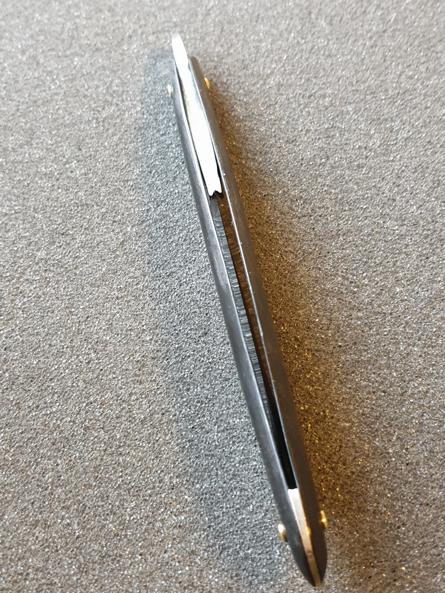 Продаётся от S&T96. Joseph Allen NonXLL Шеффилд, с родной коробочкой. Небольшие следы времени, но геометрия клинка родная заводская, практически без следов заточки. Ровная и тонкая рабочая кромка после свежей заточки на японских натуралах. Ручка - бакелит. Все родное, бритва не разбиралась.