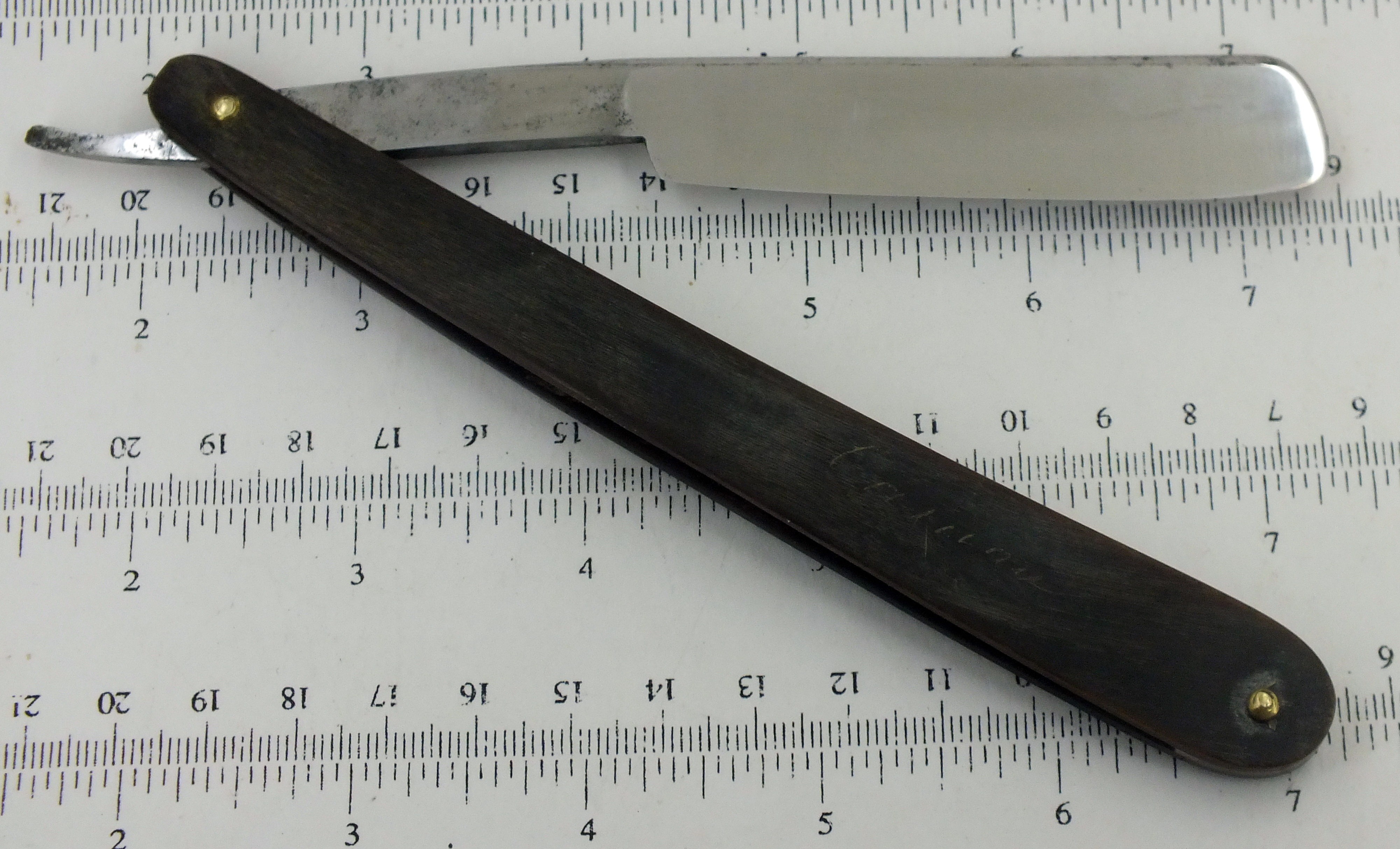 Старая француженка. Была совсем печальная. Глубокие раковины на клинке и эрле. Протер тряпочкой. Следы времени конечно остались, но результат всё же положительный. Сегодня побрился ею. Бреет отлично. Всё таки старая сталь. Spoiler Show 32 года активно мусолю харю клинковой бритвой