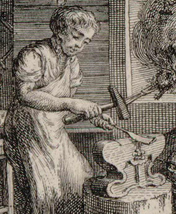 И сново Claude-Louis Desrais ou Desray (1746-1816). Клод-Луи Дерэ или Дерэ - французский художник, гравер и дизайнер. Он сделал еще одну, более детальную гравюру. 1792 г. - 1794 г.!!! „Manufacture nationale. Fabrication Particuliere de bons rasoirs d'acier fondu parallèle a celle de Sheffield eu Angleterre”. „Отечественное производство. Особое производство хороших бритв из литой стали параллельно с производством в Шеффилде в Англии”. Надписи: „The Only manufacture in France of good razors of melted steel in the same manner as that of Sheffield in Yorkshire”. „Единственное во Франции производство хороших бритв из литой стали, аналогичных тех, которые производит Шеффилд в Йоркшире”. Le Petit Walle, aux Quinze-Vingts, Faubourg St. Antoane, a Paris”. „Le Petit Walle”, район „Quinze-Vingts”, предместье Сен-Антуан, Париж”. Взглянем поближе. Ручной привод шлифовальных машин: Ковка бритв: Мальчик пробивает отверстие для осевой заклепки: Мальчик собирает горячие бритвы, которые уронил после закалки: Шлифование: Заточка и контроль качества: Заклепывание: