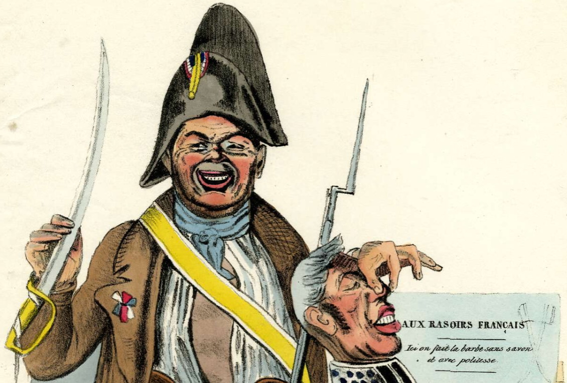 „The Parisian barber” „Парижский цирюльник” Сатира на Шарль X, обриваемого саблей мятежником. Сентябрь 1830 г. Речь идет о Второй французской революции - восстание в июле 1830 года во Франции, приведшее к свержению Шарля Х и возведению на престол Луи-Филиппа, герцога Орлеанского. Взглянем поближе:
