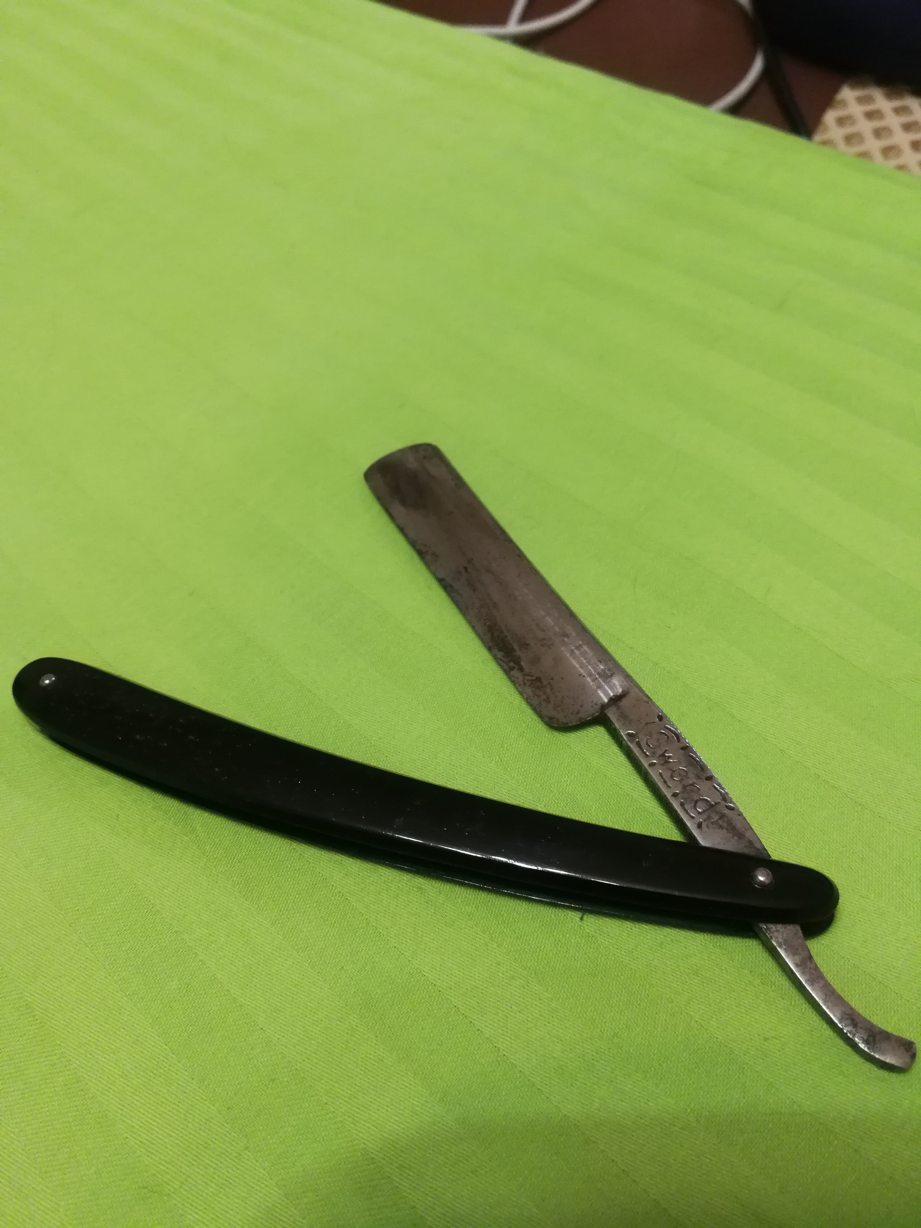 Помогите опознать бритвыНа русском это называется - ЗДРАВСТВУЙТЕ. А другой стороны у бритвы нет? Ремонт опасных бритв, звонить с 11-00 до 23-00, +79267729357, (whats app, telegram, VK), спросить Олега.