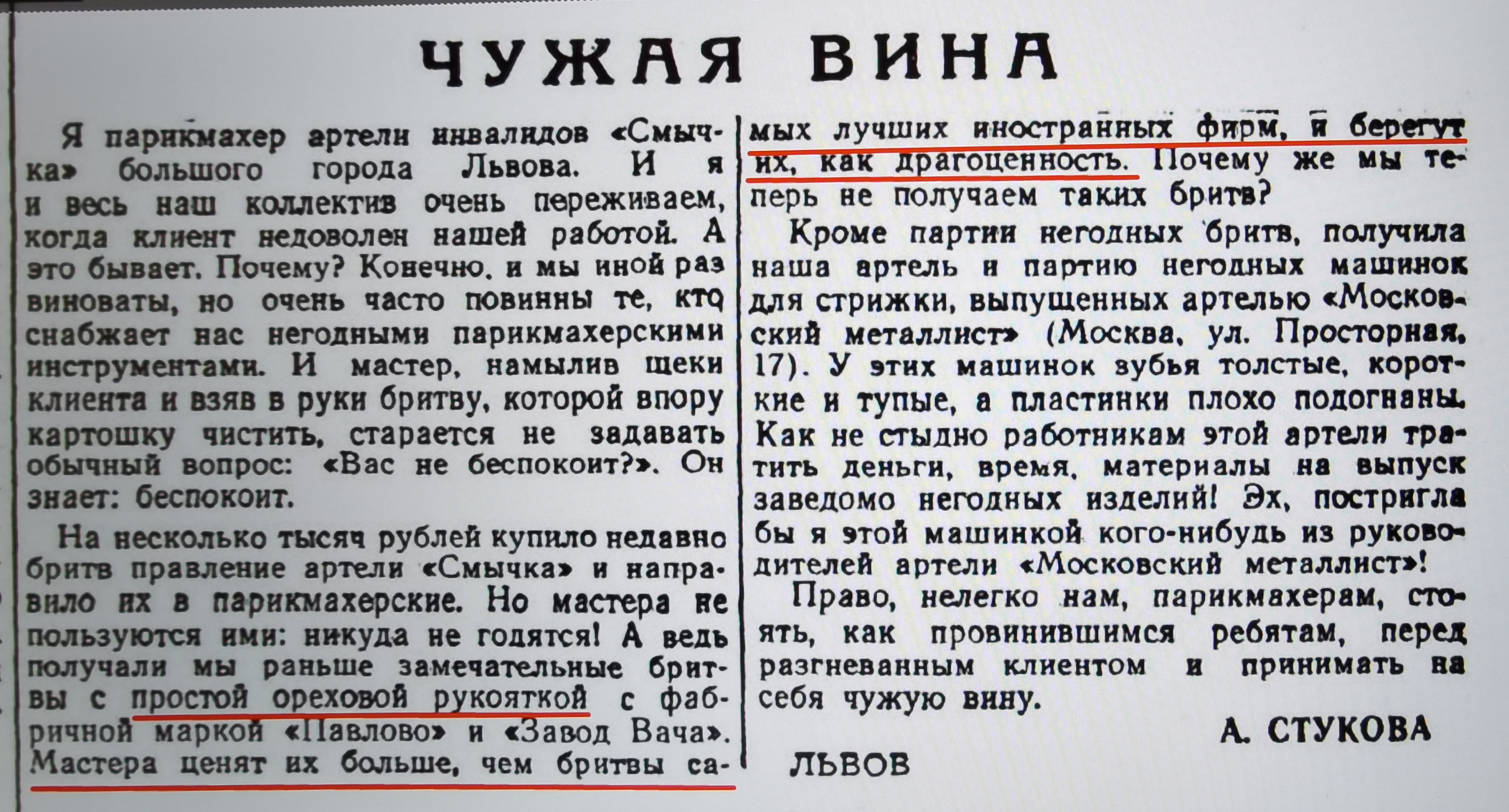 Интересно, видимо артель инвалидов была недовольна бритвами СТИЗ и ЗТ начала 50х?