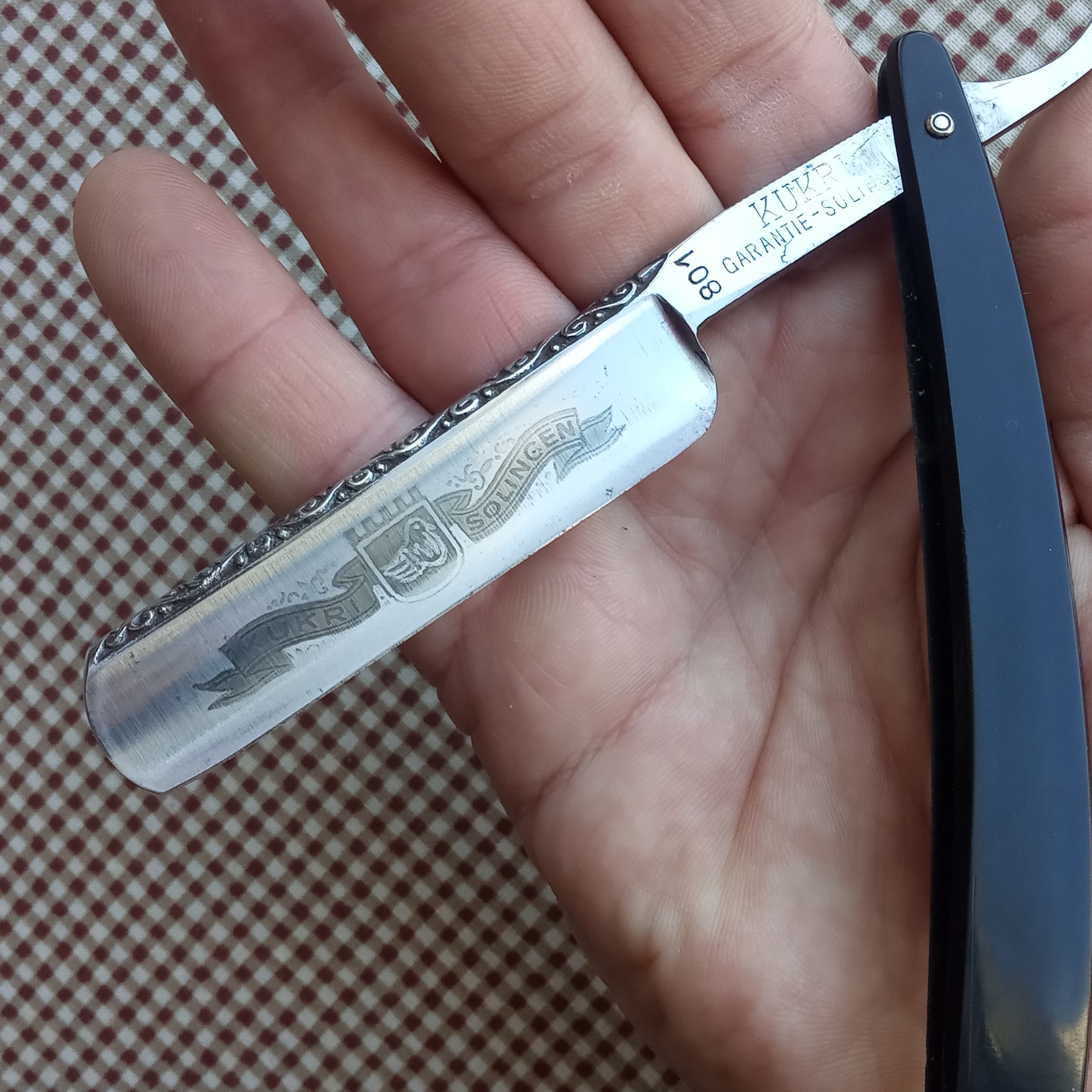 Травление клинка, восстановление рисунка.С каждой бритвой мастерство растет. Молодец.