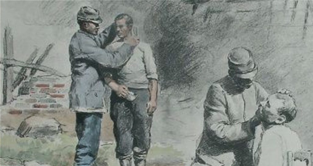 Картина придает другой смысл слову „брить” - унести жизнь! „One's shaving the other and I shave them all” „Ce la faciam l'un l'altro et io la facio a' tutti” „Один бреет другого, и я их всех брею”, около 1700 г.!!! Взглянем поближе: