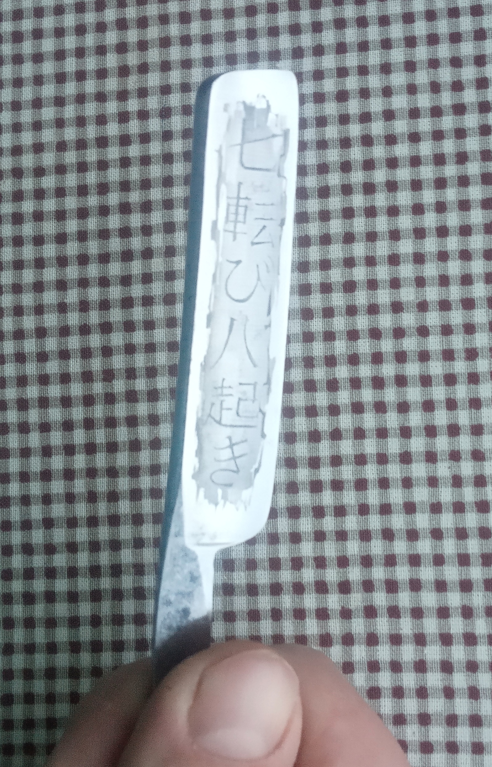 Травление клинка, восстановление рисунка."Семь раз упади, восемь раз встань" яп.