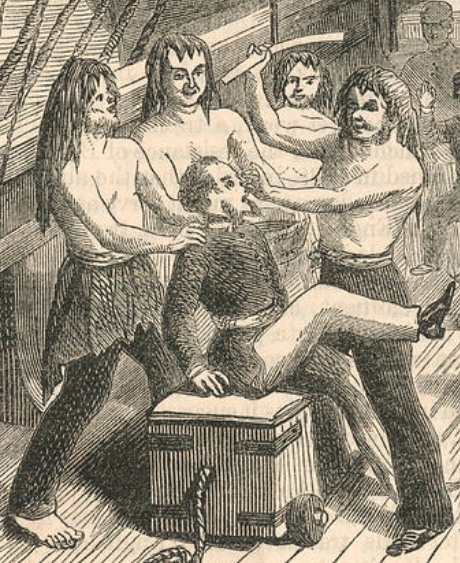 Опасная бритва в искусстве (картины, рисунки, фото, тату)Иллюстрация из книги „Морских открытий и приключений” (Maritime Discovery and Adventure), опубликованного издательством „W&R Chambers” в Лондоне и Эдинбурге в 1888 году. В книге не указаны иллюстраторы (на картине есть инициалы W. Chesnire).