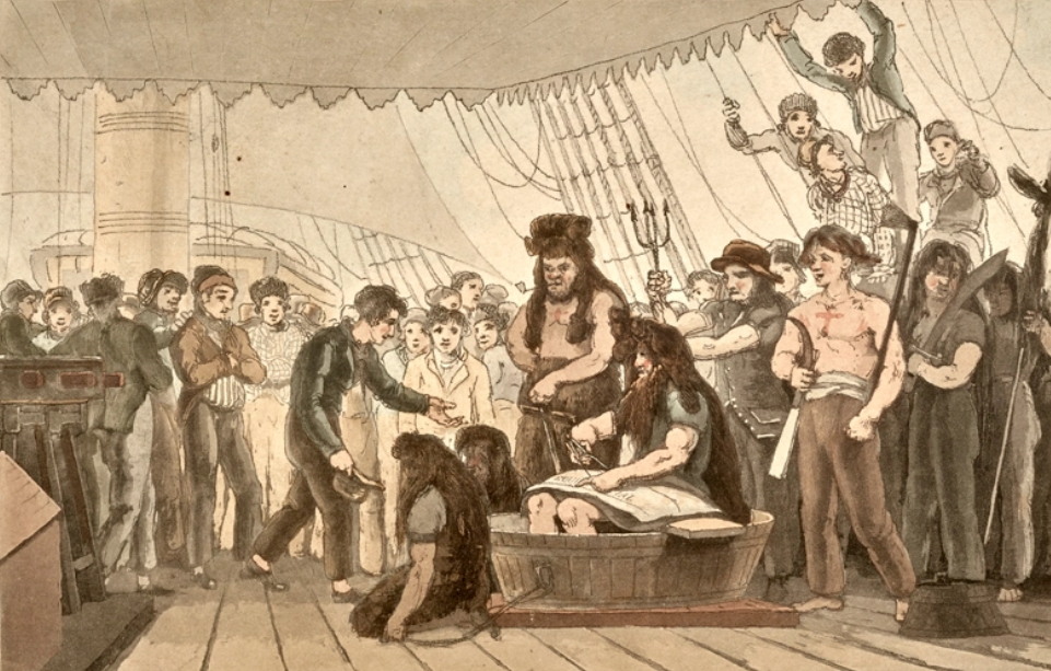 Исаак Роберт Круикшанк, иногда известный как Роберт Круикшанк, был карикатуристом, иллюстратором и портретистом-миниатюристом, менее известным братом Джорджа Круикшенка. „Crossing the Line” „Пересечение линии экватора”, Взглянем поближе: С 2013 г. с кайфом бреюсь опасной бритвой пять раз в неделю, в три прохода.