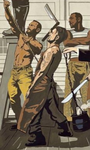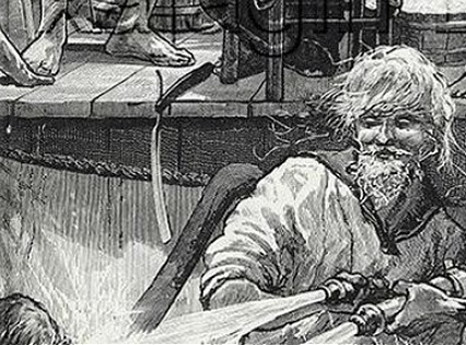 Опасная бритва в искусстве (картины, рисунки, фото, тату)Иллюстрация из книги „Морских открытий и приключений” (Maritime Discovery and Adventure), опубликованного издательством „W&R Chambers” в Лондоне и Эдинбурге в 1888 году. В книге не указаны иллюстраторы (на картине есть инициалы W. Chesnire).