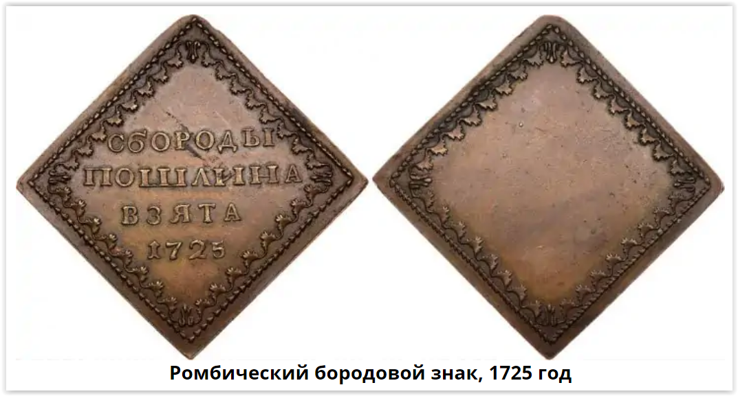 Фото №9: Пётр I, 1723 г. Указ № 4245. - Iюня 14. - О взыканіи съ торговыхъ людей, за небритіе бородъ, штрафа и объ увольненіи отъ онаго крестьянъ, которые привозятъ въ города на продажу сельскіе продукты и торгомъ не занимаются. Фото №10: Пётр I, 1724 г. Указ № 4596. - Ноябра 13. - О раздачѣ раскольникамъ для ношенія сверхъ платья особыхъ знаковъ, объ учрежденіи при Сенатѣ особливаго стола для сбору съ раскольниковъ денегъ и о ношеніи женам раскольниковъ особаго платья. Фото 11: Бородовой знак 1725 г. (Источник фото: monetnik.ru). На лицевой стороне надпись „СБОРОДЫ ПОШЛИНА ВЗѦТА”, оборотная сторона гладкая. По гурту надпись: „БОРОДА ЛИШНѦѦ ТѦГОТА”. Как я уже показал, до наших дней сохранилось только три основных вида бородовых знаков: 1699 г., 1705 г. и 1725 г. Императрица Екатерина I Фото №12: Екатерина I, 1726 г. Указ № 4893. - Маія 31. - О ношеніи отставнымъ изъ военной службы Нѣмецкаго платья и шпагъ, о бритіи бородъ и о содержаніи себя въ чистотѣ. Фото №13: продолжение указа № 4893 Фото №14: Екатерина I, 1726 г. Указ № 4900. - Iюня 3. - О сборѣ съ Выгорѣцкихъ раскольниковъ, какъ подушныхъ, такъ и за расколъ и за бороды денегъ Земскимъ Коммисарамъ, и объ отсылкѣ собранныхъ денегъ въ Штатсъ-Контору, а за расколъ и за бороды въ Москву къ Стольнику Савелову. Фото №15: продолжение указа № 4900 Фото №16: продолжение указа № 4900